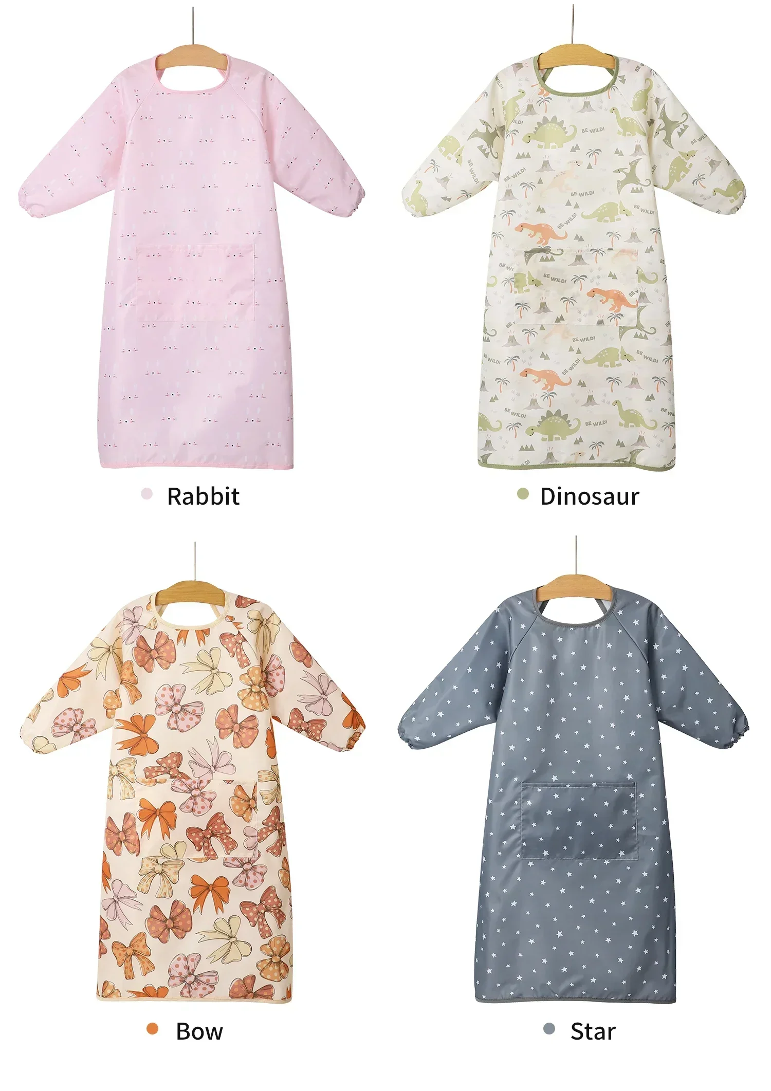 Baberos INSULAR para bebé, vestido impermeable de manga larga inversa para niño, delantal de alimentación infantil de dibujos animados, monos de dibujo, toalla de Saliva para niño