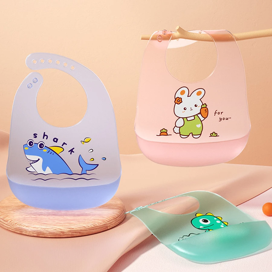 Babero de silicona tridimensional impermeable con diseño de dibujos animados para bebés y niños pequeños, bolsillo de arroz para alimentos para bebés, ultrasuave, ligera y no lavable
