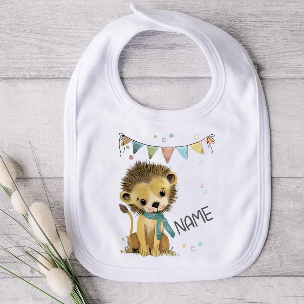 Baberos personalizados para bebé, Animal con nombre, babero de algodón para niños y niñas, toalla de Saliva personalizada para recién nacidos, babero de dibujos animados para recién nacidos, regalo de ducha infantil