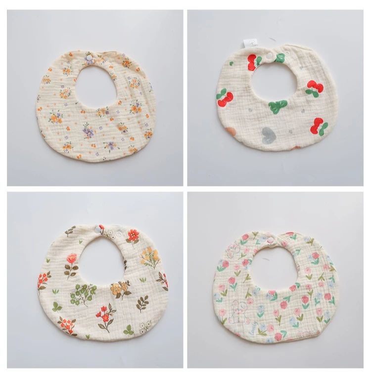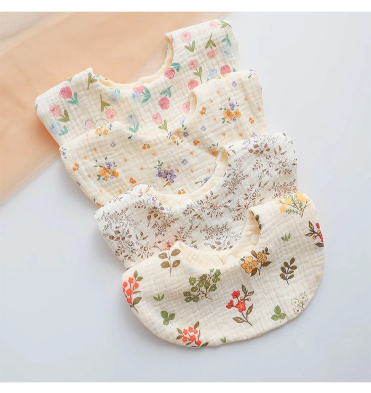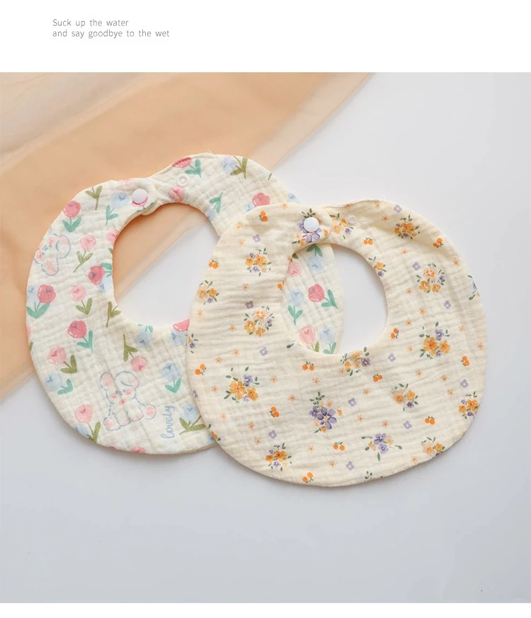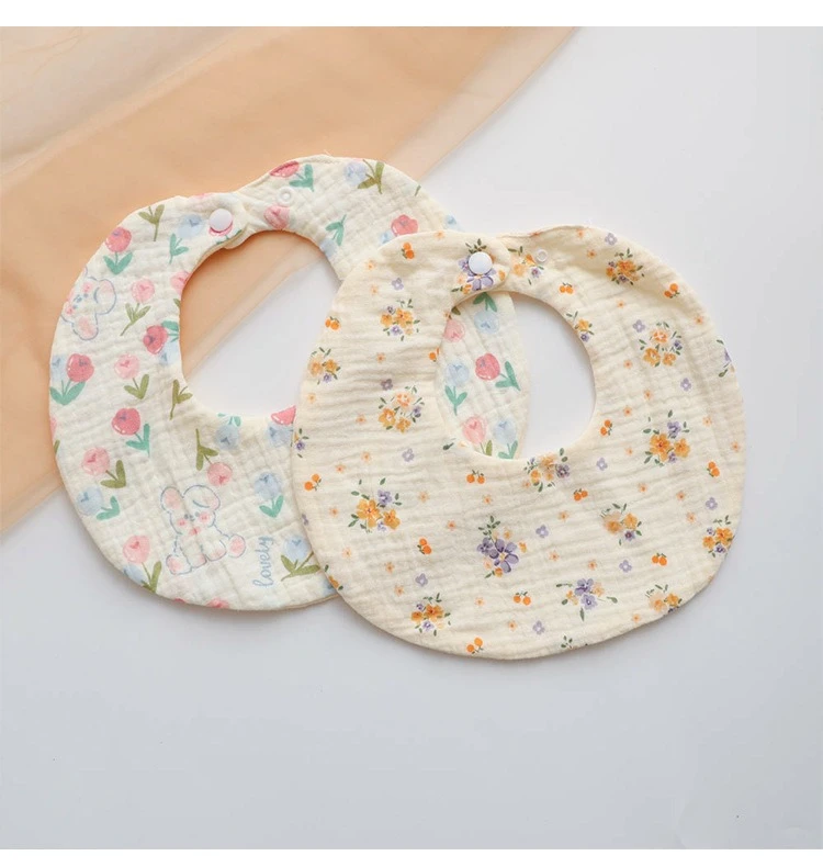 Baberos redondos de gasa arrugada de 6 capas para bebés, Baberos Bandana con estampado Floral para recién nacidos, Baberos de alimentación, elementos esenciales para el cuidado del bebé