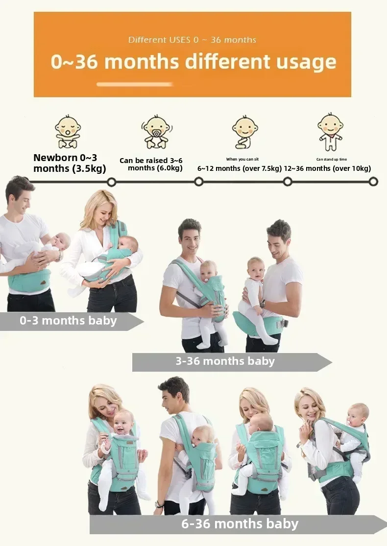 Baby Carrier Portable Kids Hipseat Travel Children Wrap Carrier Comfortable Multi-functional Infant Sling Front Facing Pad 0-3Y