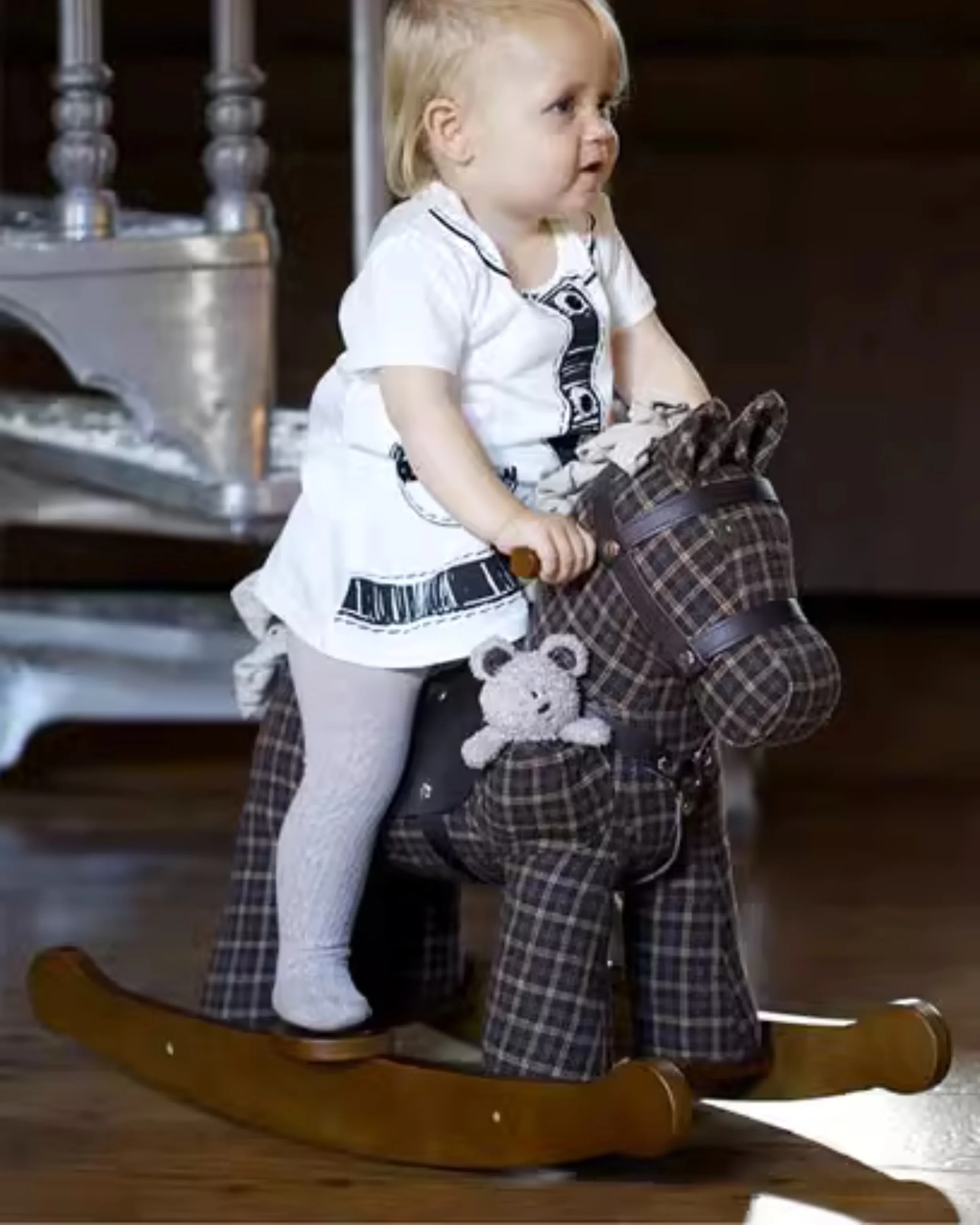 Comprar Baby Trojan-silla mecedora de madera maciza, caballo, primer cumpleaños, regalo del Día de los niños, tela de felpa suave, balancín de conejito