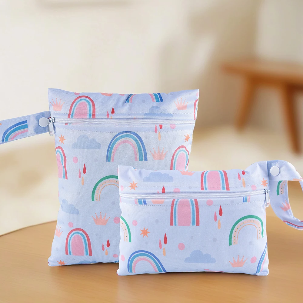 Babyshow 2 piezas diferentes mini tamaños lavable bolsa húmeda poliéster solo bolsillo ideal para trajes de baño bolsa de maquillaje bolsa de pañales portátil