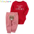 Comprar Babzapleume-Conjunto de ropa para bebé recién nacido, mono infantil de manga larga con letras de dibujos animados, pantalones a rayas, 087