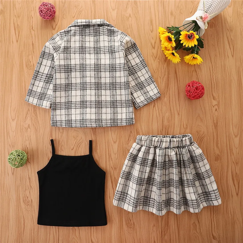 Babzapleume-Conjunto de ropa para niñas pequeñas, prendas de vestir a la moda a cuadros, chaleco y falda, Boutique, Otoño, 130