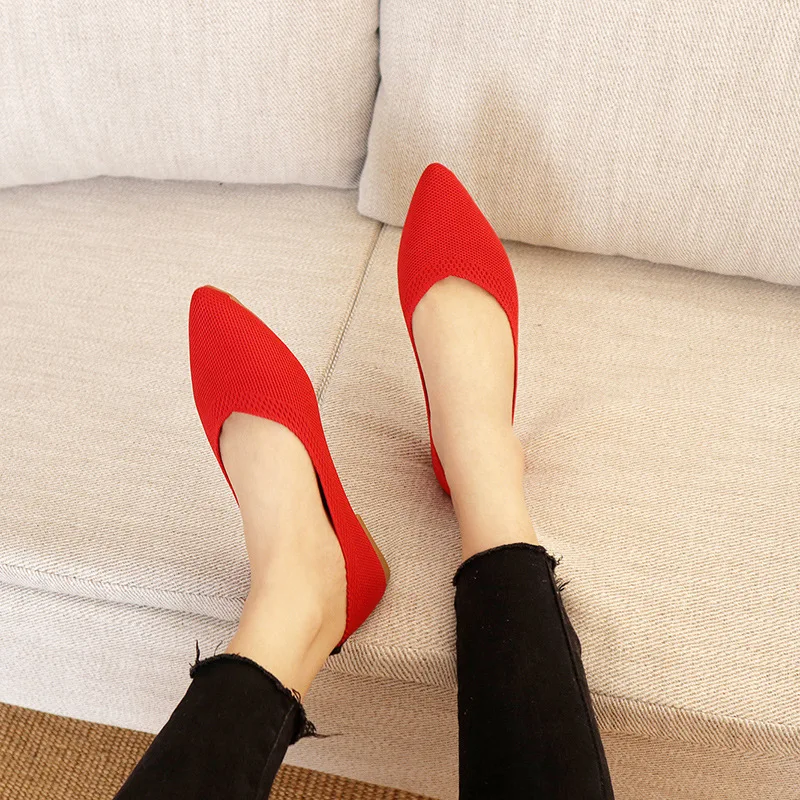 Bailarinas elegantes de punto de leopardo para mujer, mocasines de malla con punta estrecha, mocasines para caminar a la moda, zapatos de conducción suaves sin cordones