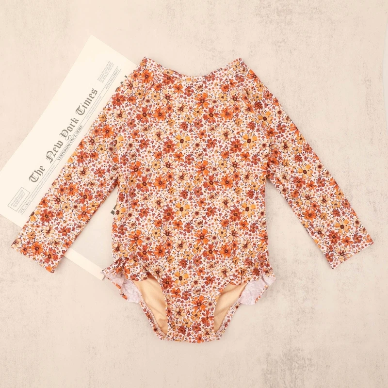 Bañador Floral de manga larga para bebé, traje de baño con protección UV, secado rápido, piscina, ropa de playa