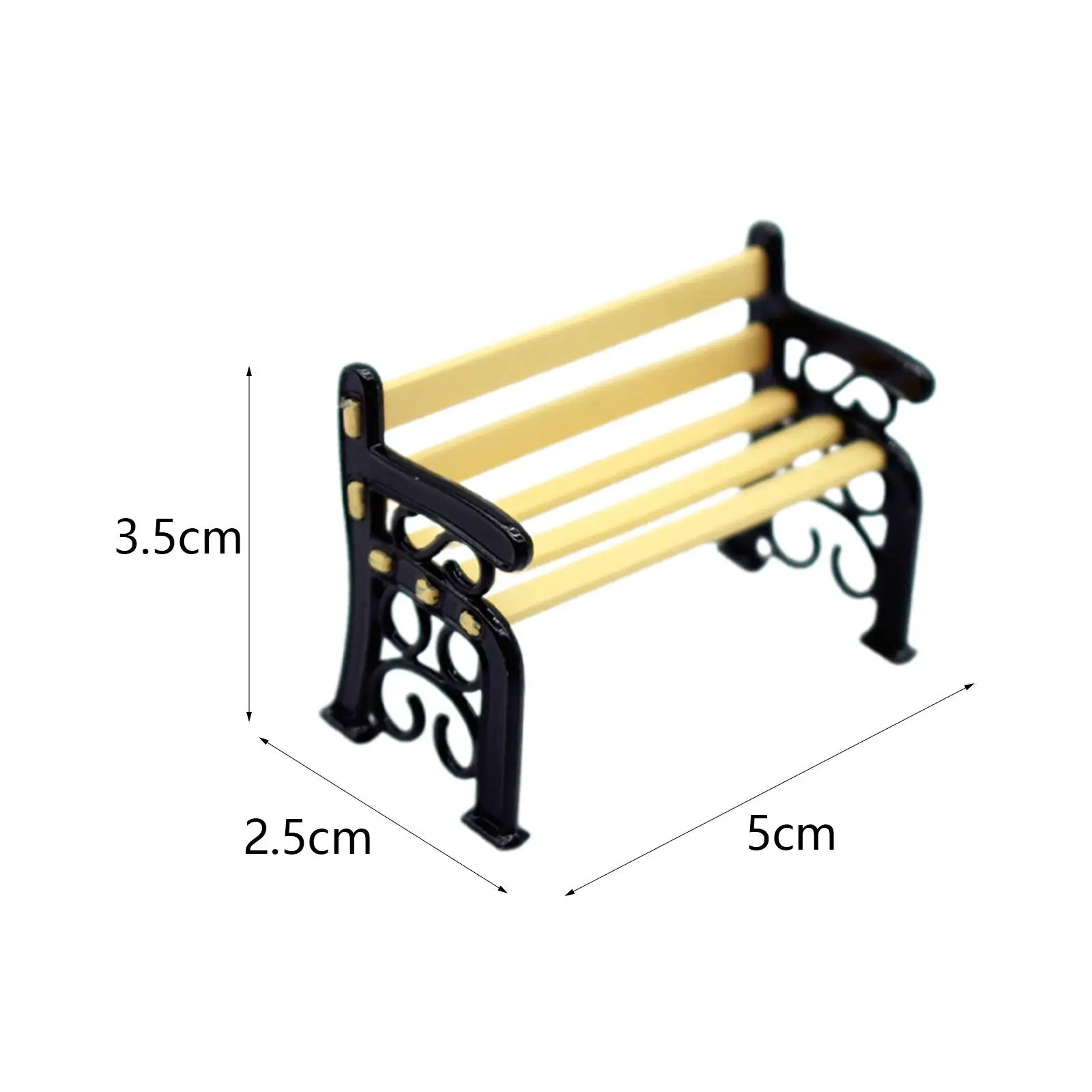 【Material】: Silla de Banco de parque en miniatura para casa de muñecas hecha de material de aleación, se puede utilizar a largo plazo.