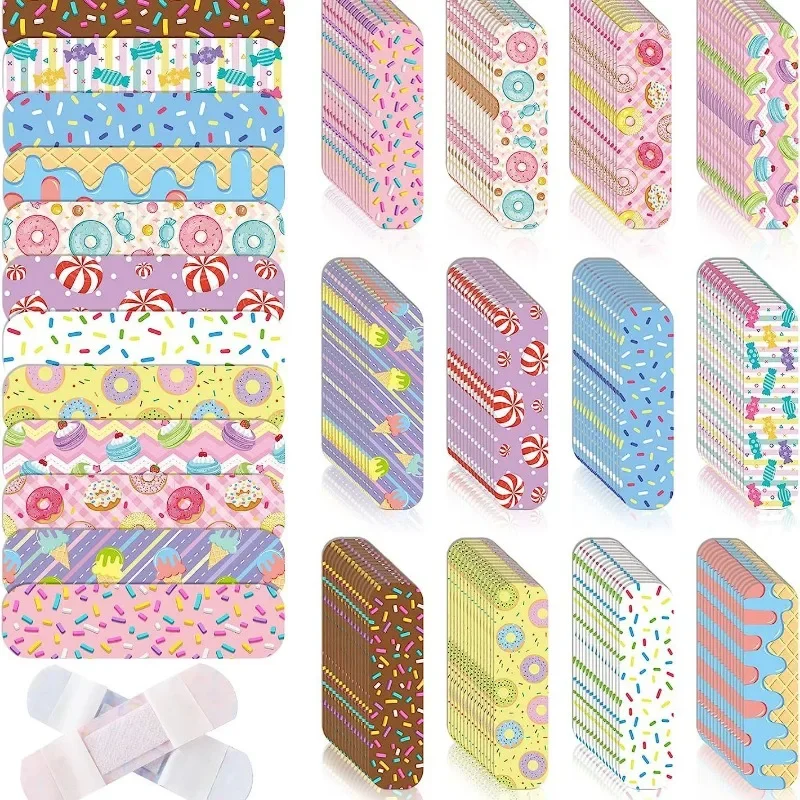 Banda de ayuda con patrón de donut de dibujos animados, apósitos impermeables de PE, vendajes adhesivos para vendaje de heridas, cinta Wast Kawaii, 50 unids/set