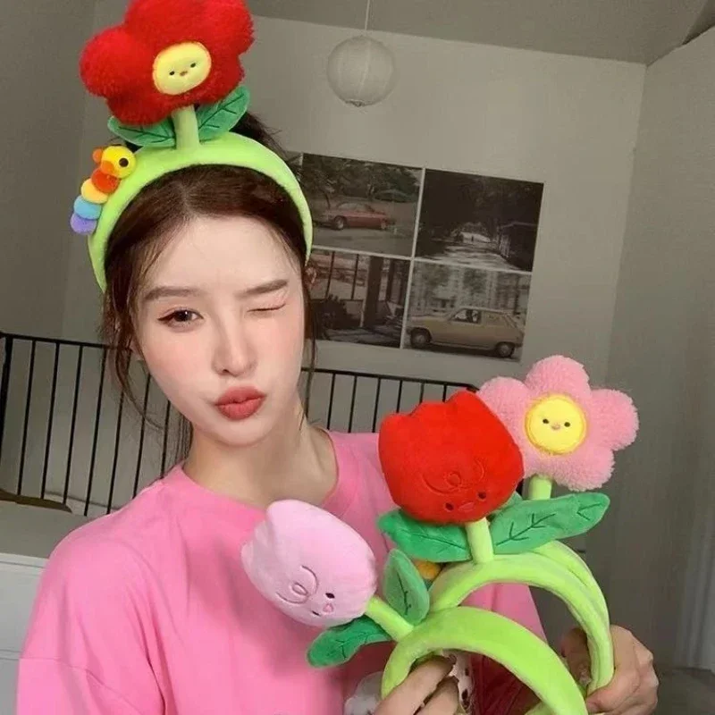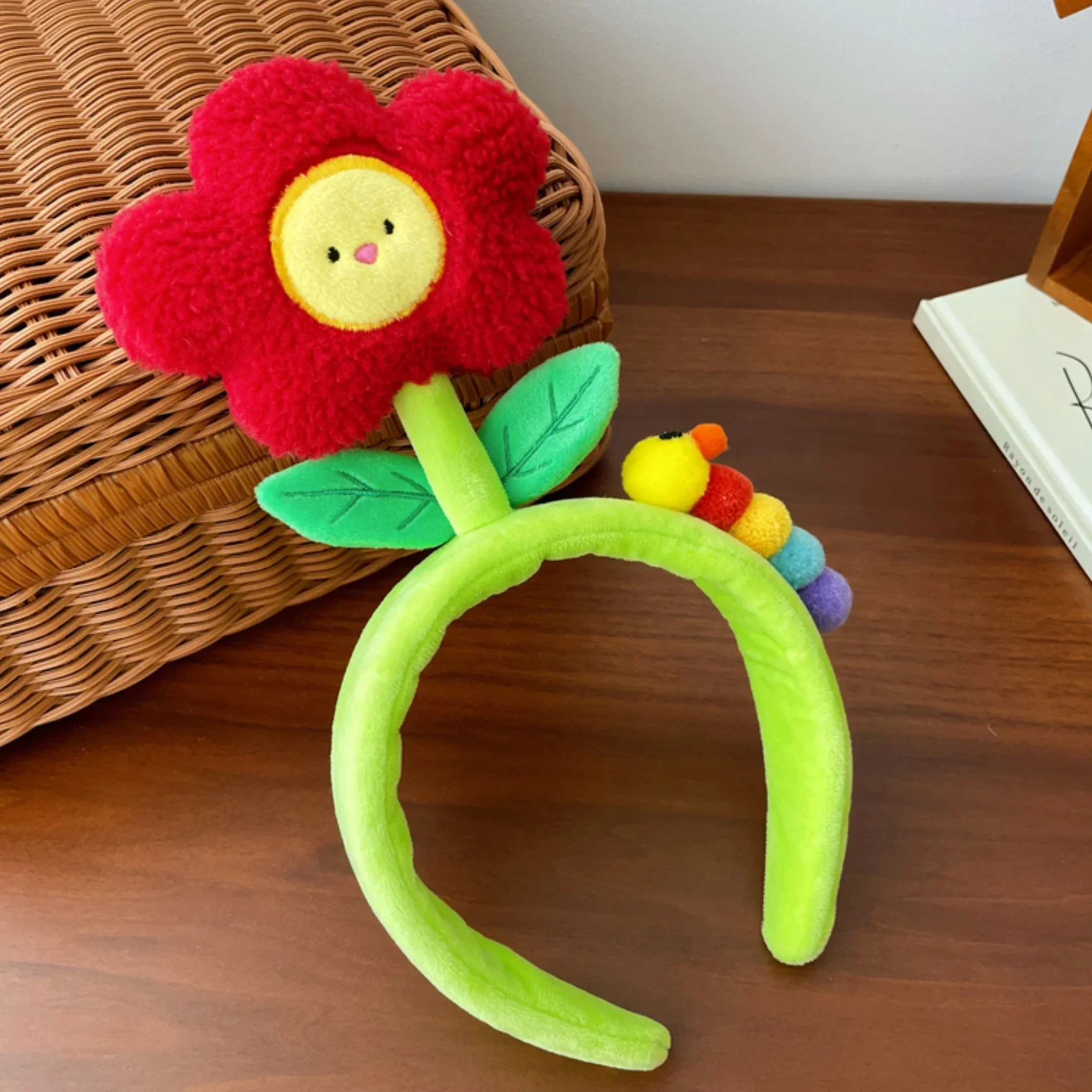 Comprar Banda para el cabello para lavado de cara con flor de oruga de dibujos animados, pinza para el pelo de felpa bonita, banda para la cabeza, accesorios para el cabello creativos y divertidos para fotografía