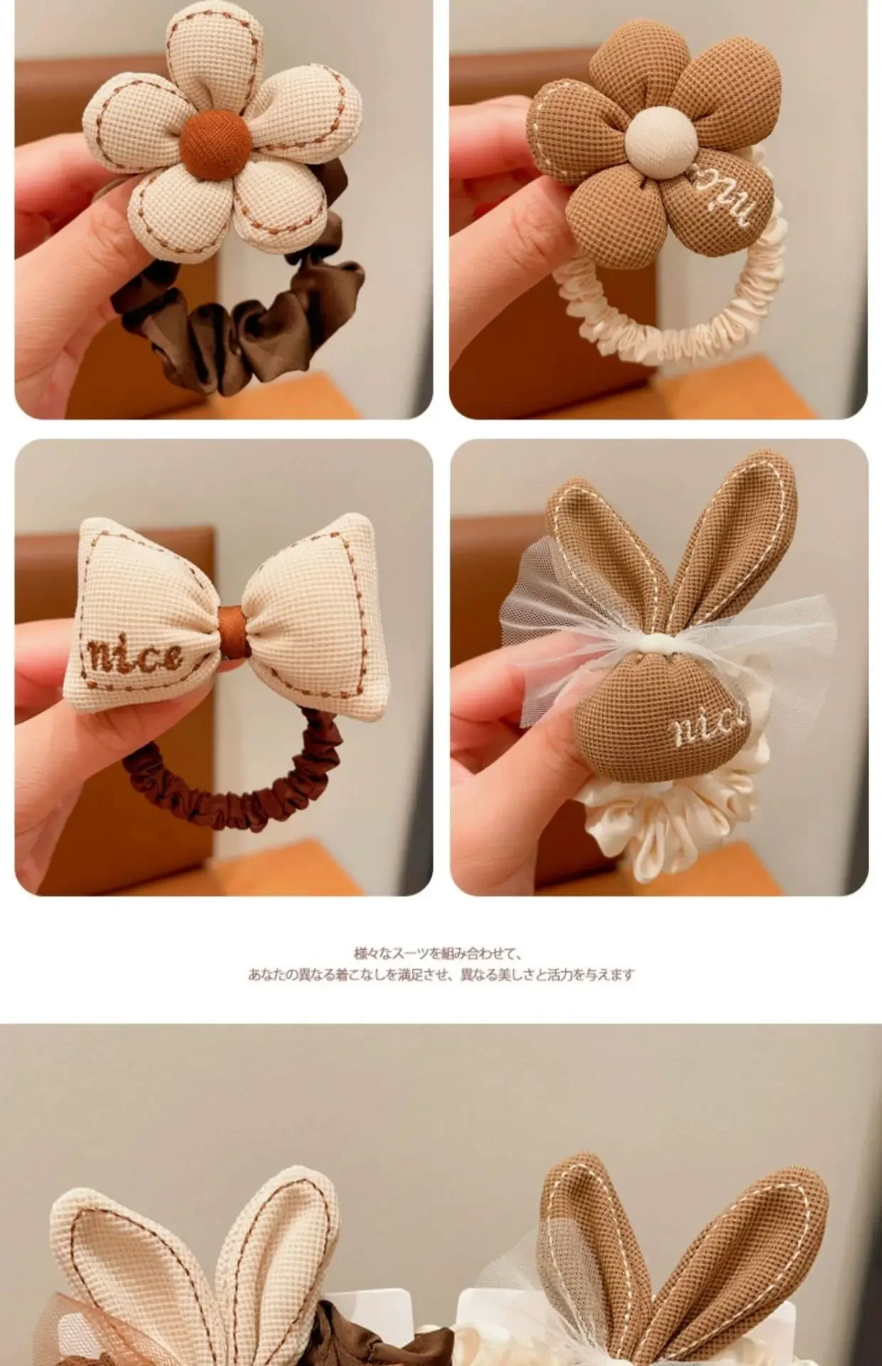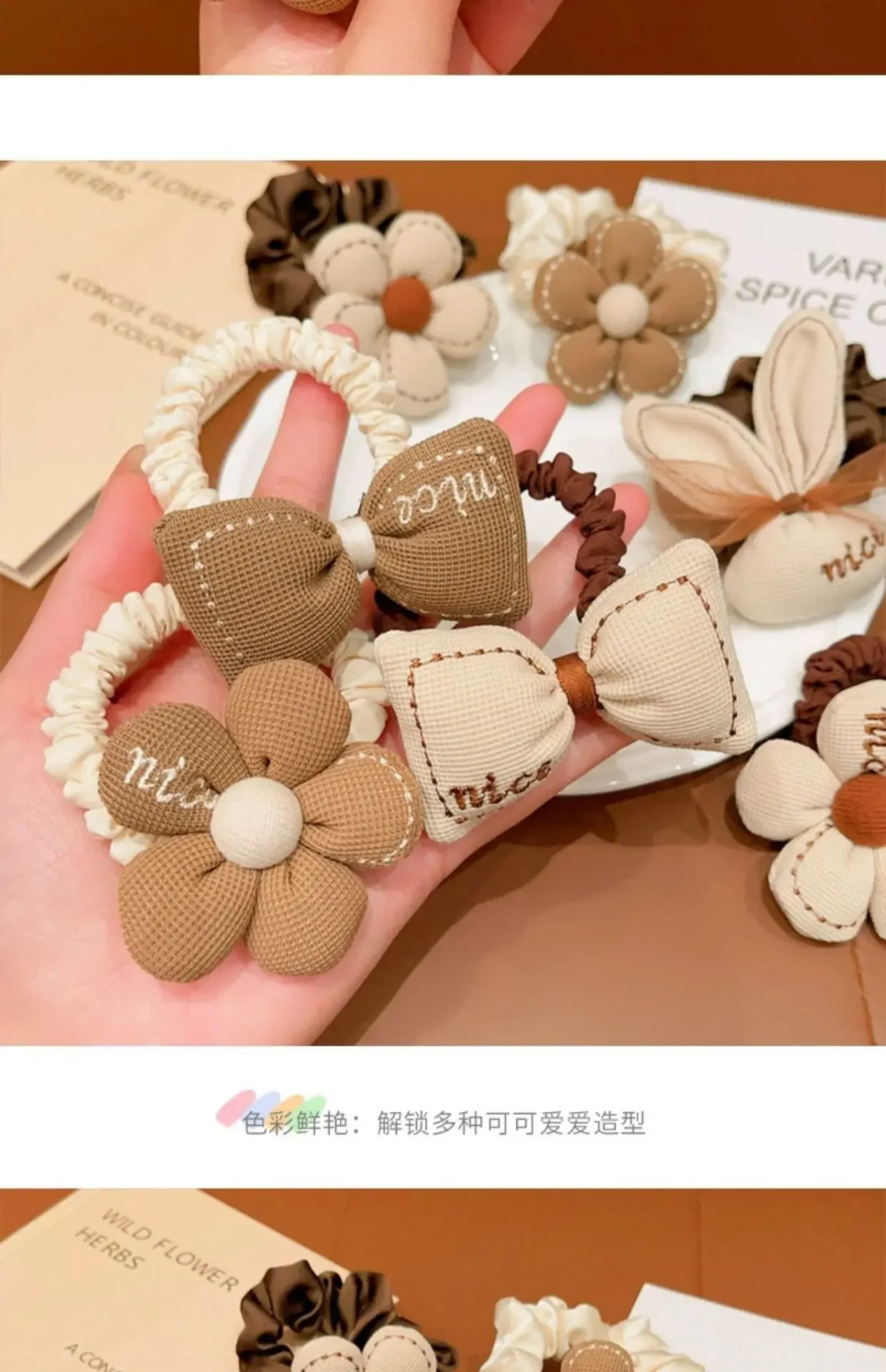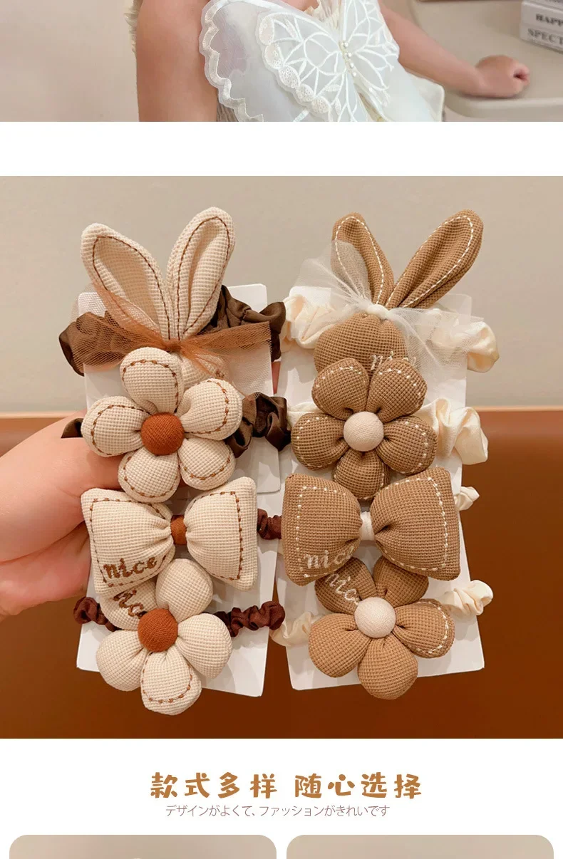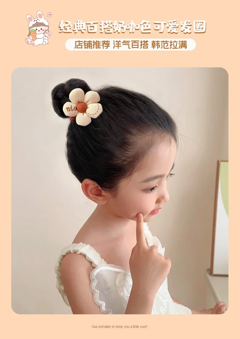 Bandas elásticas para el cabello de Chocolate de dibujos animados coreanos, lazos para el cabello de oso y conejo, cuerda para niñas, coleteros de flores con sonrisa de goma, soporte para cola de caballo para niños