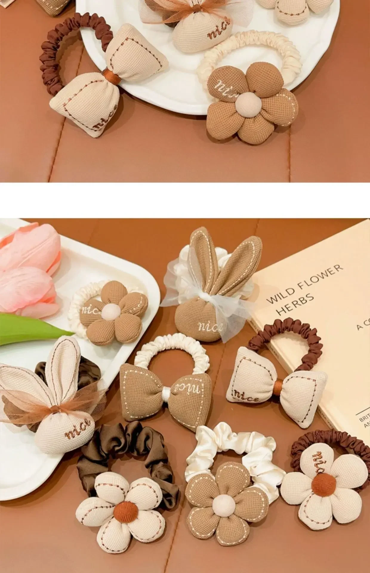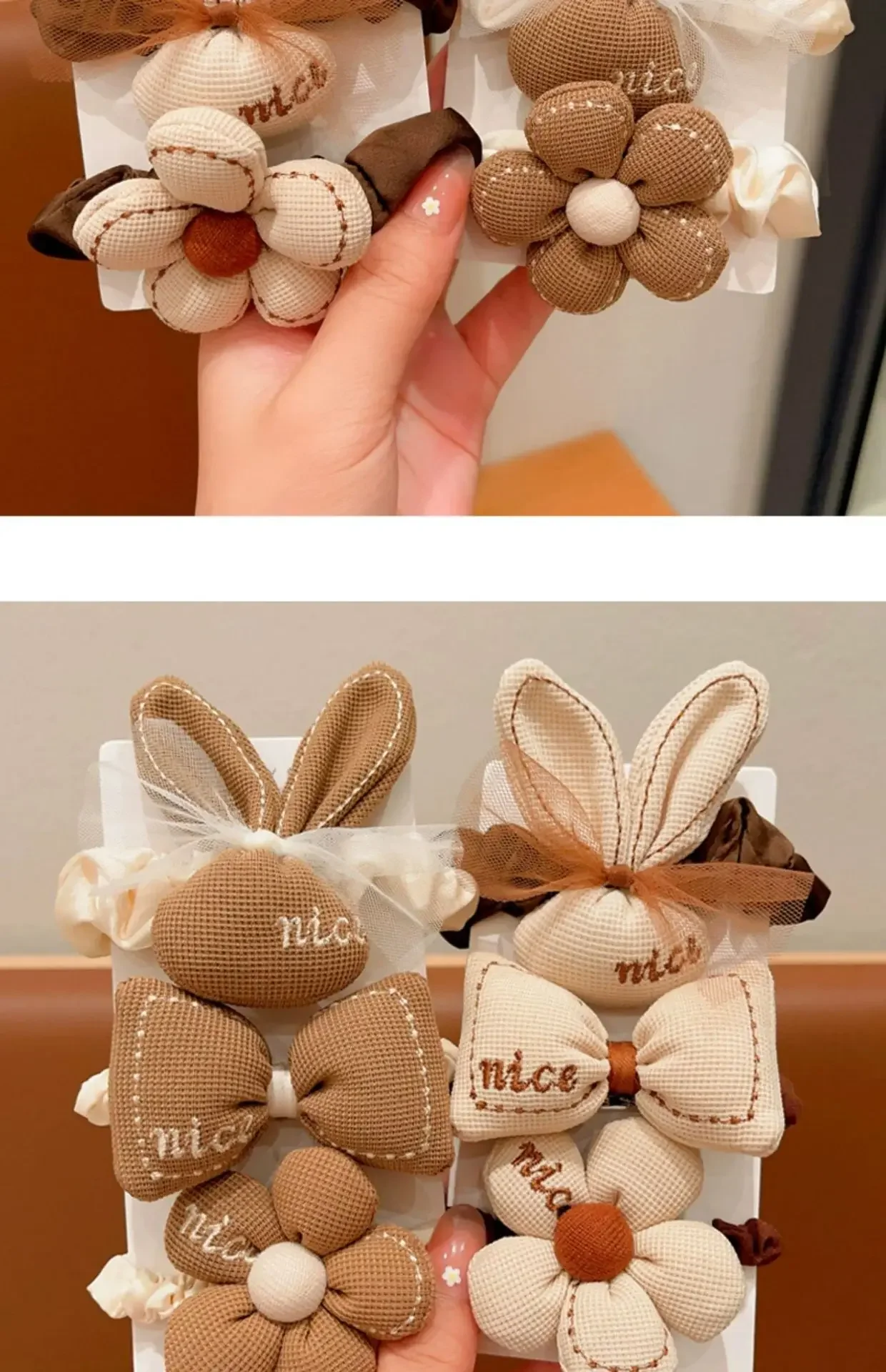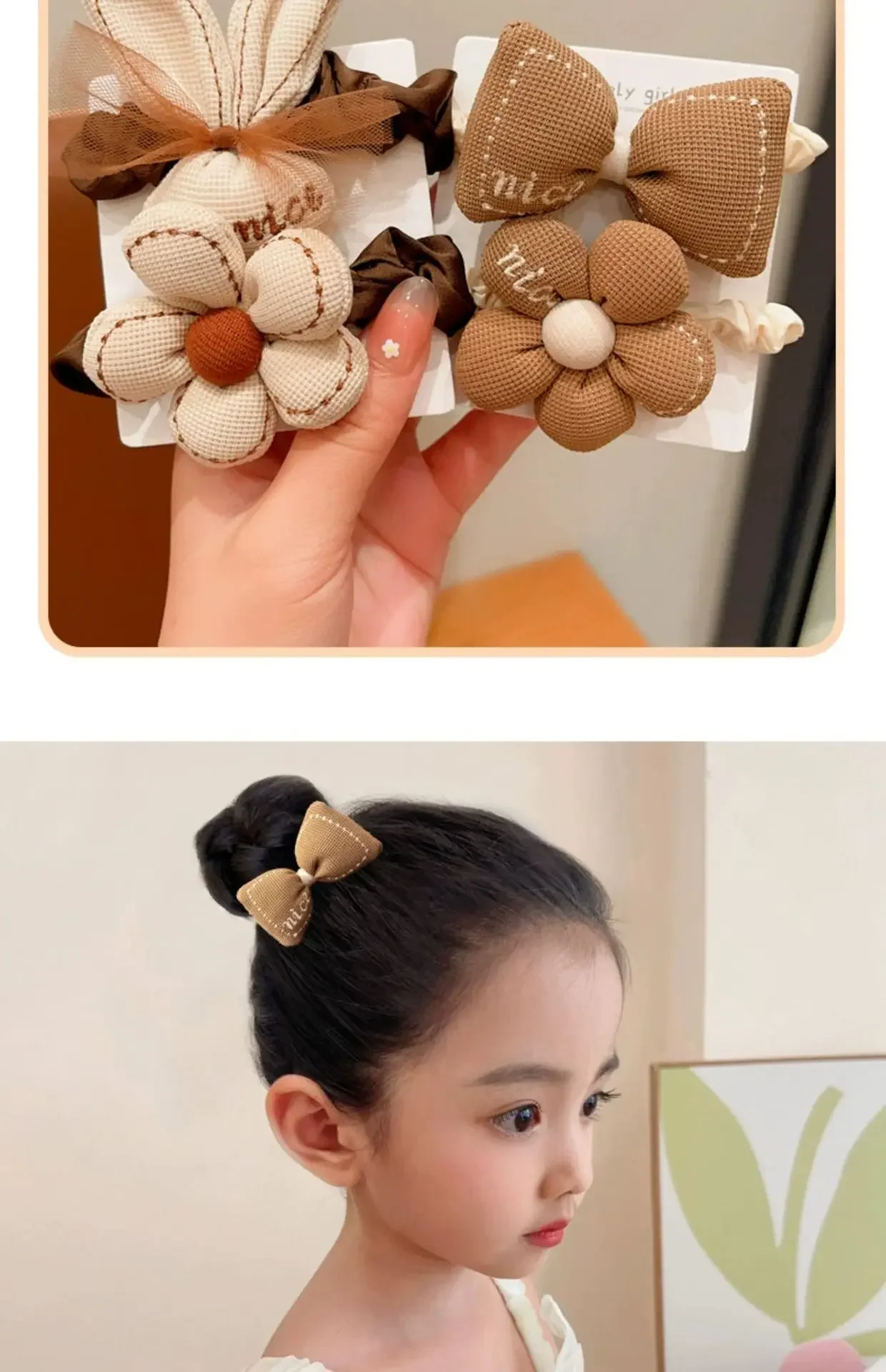 Bandas elásticas para el cabello de Chocolate de dibujos animados coreanos, lazos para el cabello de oso y conejo, cuerda para niñas, coleteros de flores con sonrisa de goma, soporte para cola de caballo para niños