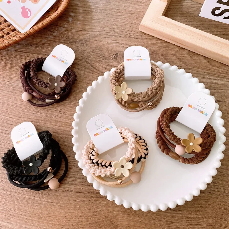 Comprar Bandas Elásticas coreanas para el pelo para niña, cintas para el pelo con cuentas florales, lazos para el pelo, accesorios para el cabello, 5 piezas