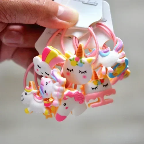 Comprar Bandas elásticas para el pelo para niña y mujer, 2 piezas, con dibujos de unicornios, Color caramelo, para la escuela, accesorios para la cabeza
