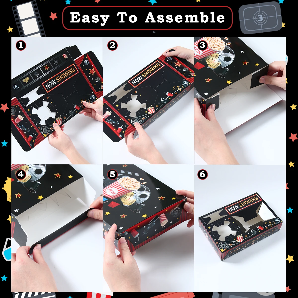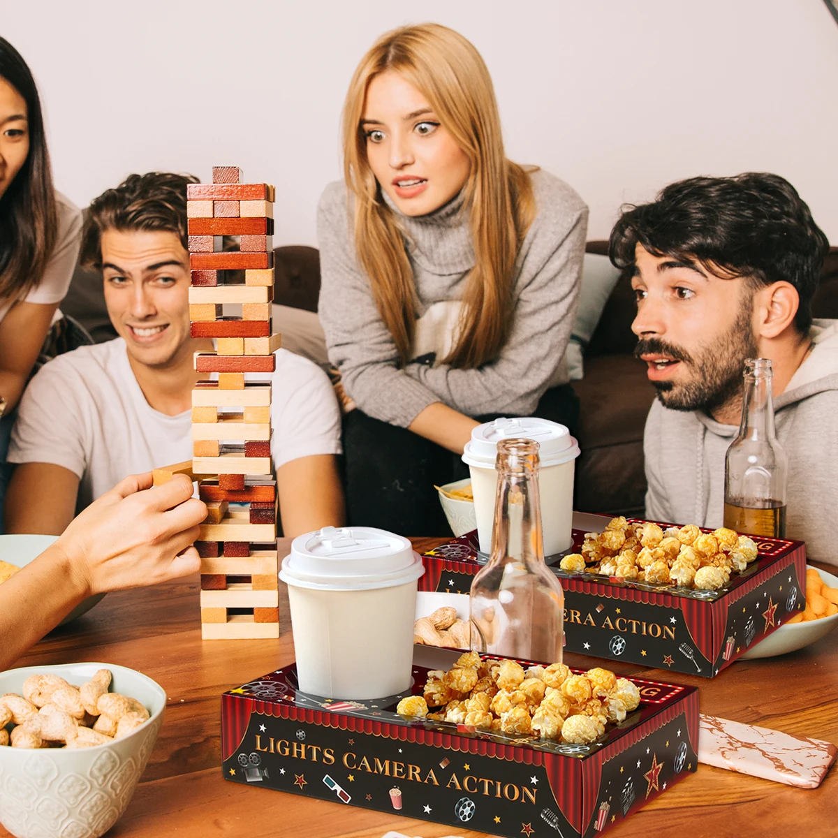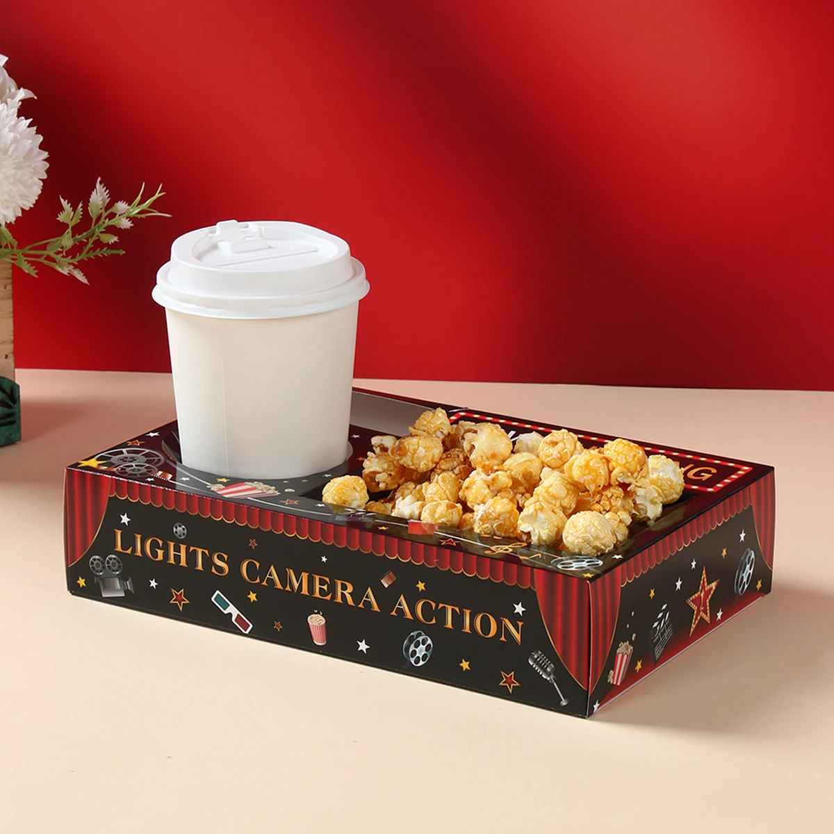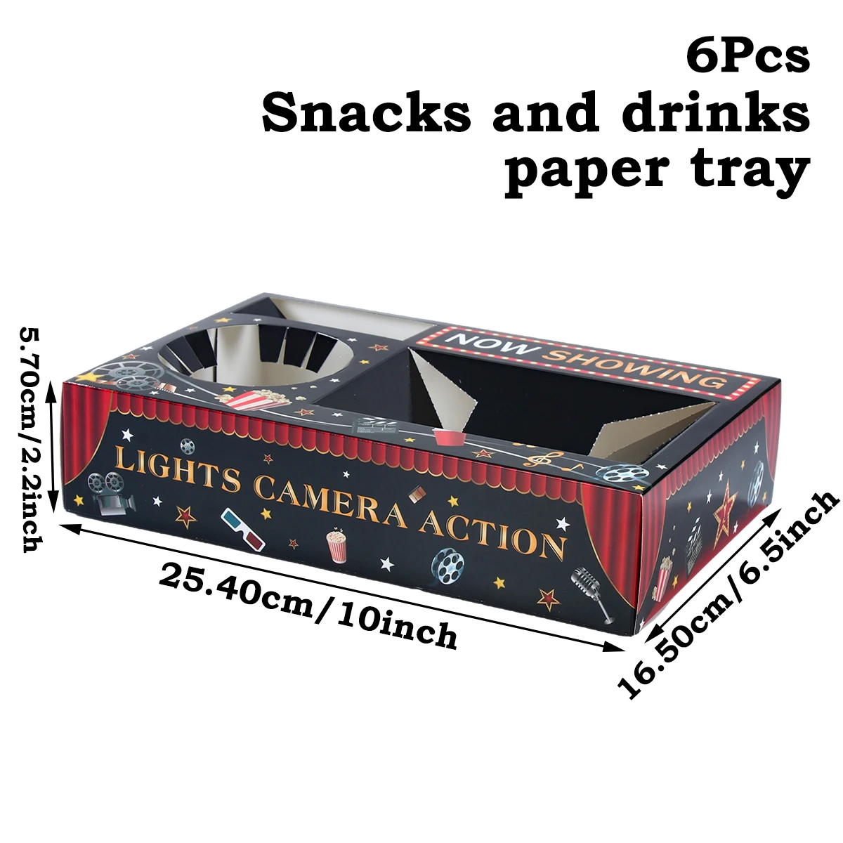 Bandeja de papel para bebidas y aperitivos nocturnos de película, bandeja de aperitivos para cine, suministros para fiestas temáticas nocturnas, decoración de bandeja para fiesta de cumpleaños, 6 uds.