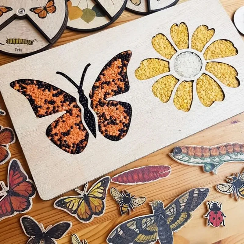 Bandeja sensorial de animales de madera Montessori, herramientas, rompecabezas, juguetes de habilidad práctica para niños, tablero de actividades, juguetes educativos de aprendizaje