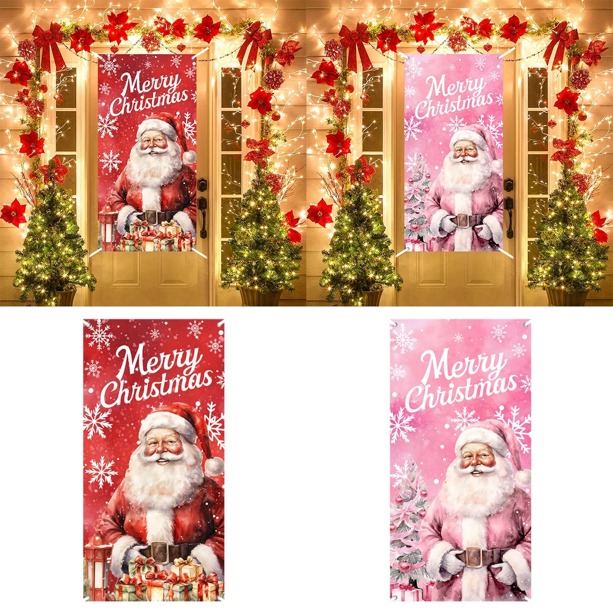 Bandera colgante de Navidad, cartel de Puerta de Santa Claus, decoración navideña para el hogar, 2024, decoración navideña, Navidad, Navidad, Año Nuevo, 2025 de regalo