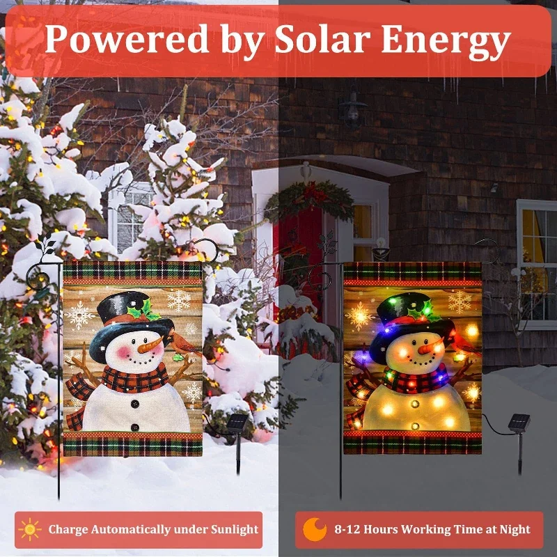 Bandera navideña LED con energía Solar, luz bonita de muñeco de nieve y patrón temático Grinch, bandera ligera para Festival y patio