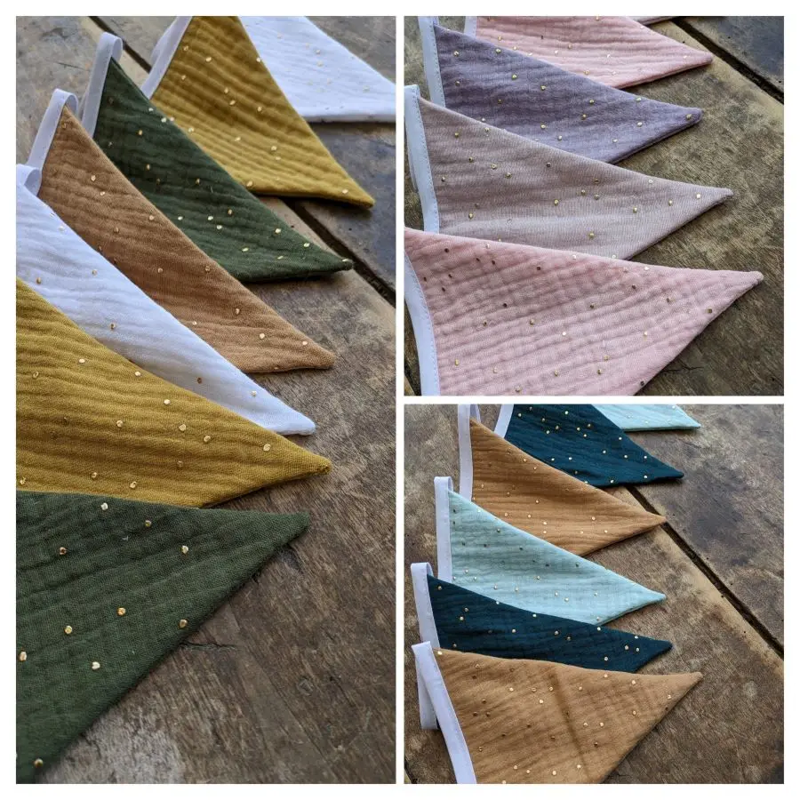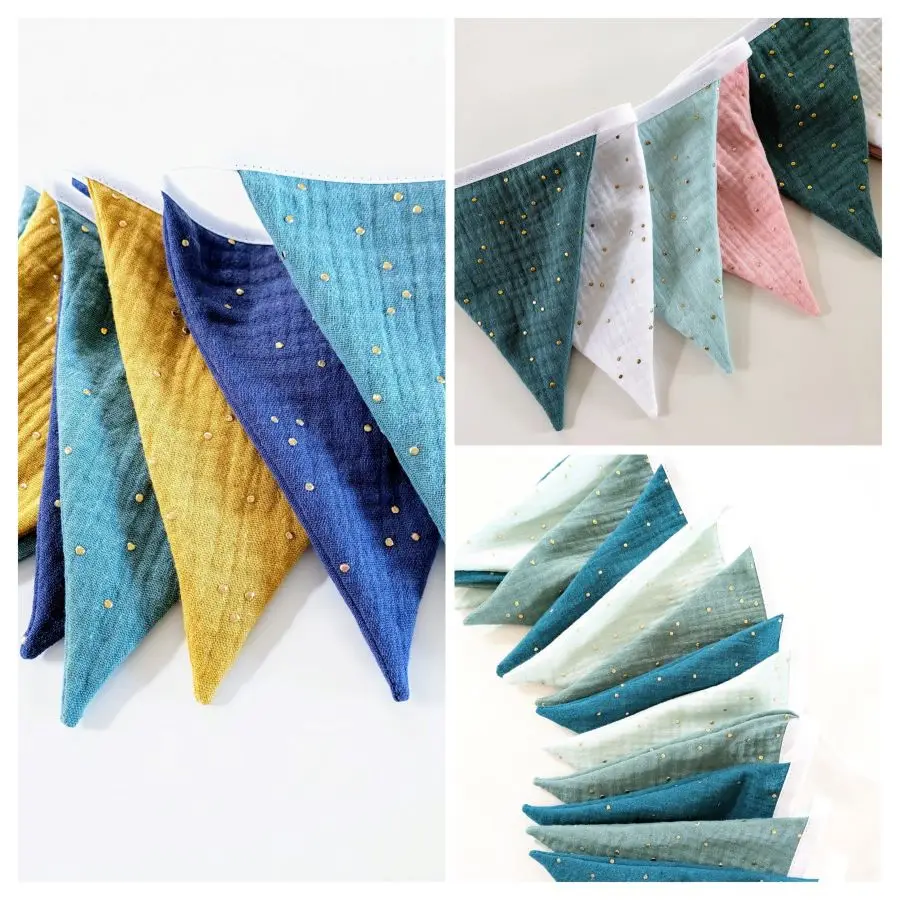 Comprar Banderín de gasa de algodón doble, guirnalda, pancarta de tela, decoración de bandera, decoración de habitación de bebé