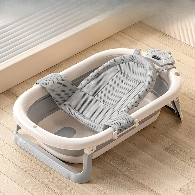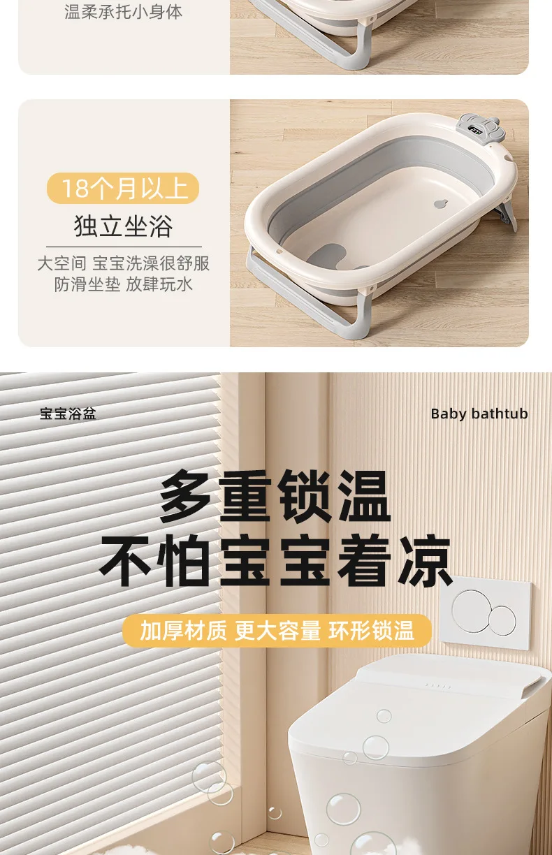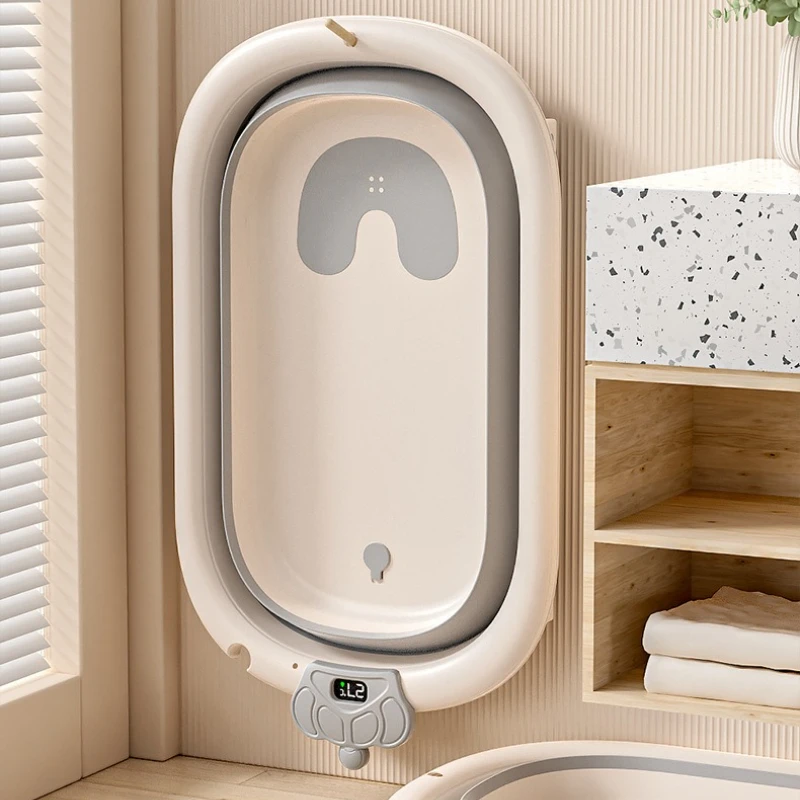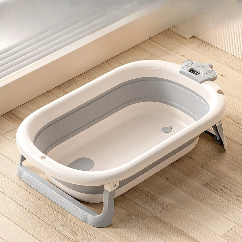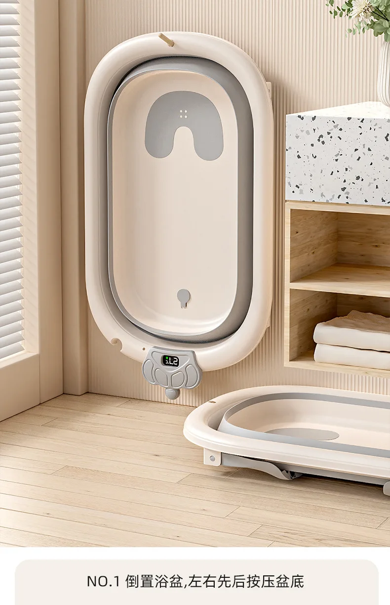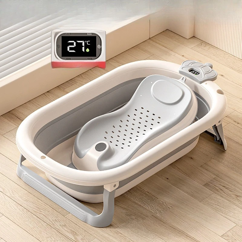 Comprar Bañera de bebé plegable de grado hospitalario, lavabo de baño para recién nacido de 3 etapas con tapón de drenaje con termómetro Digital, compatible con bebés de 0 a 24 meses