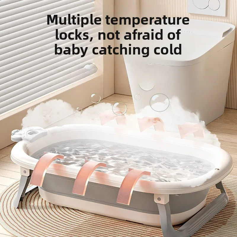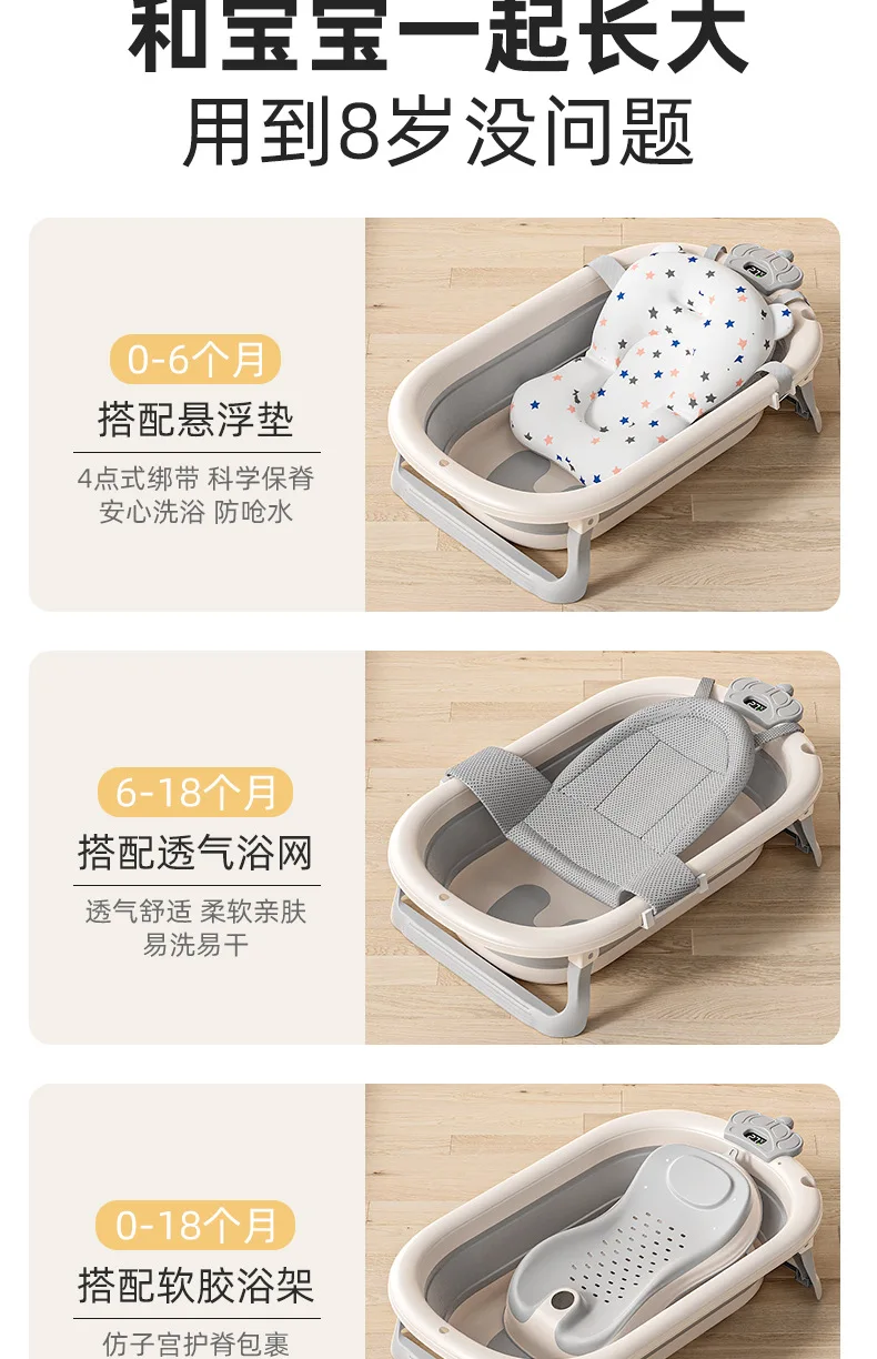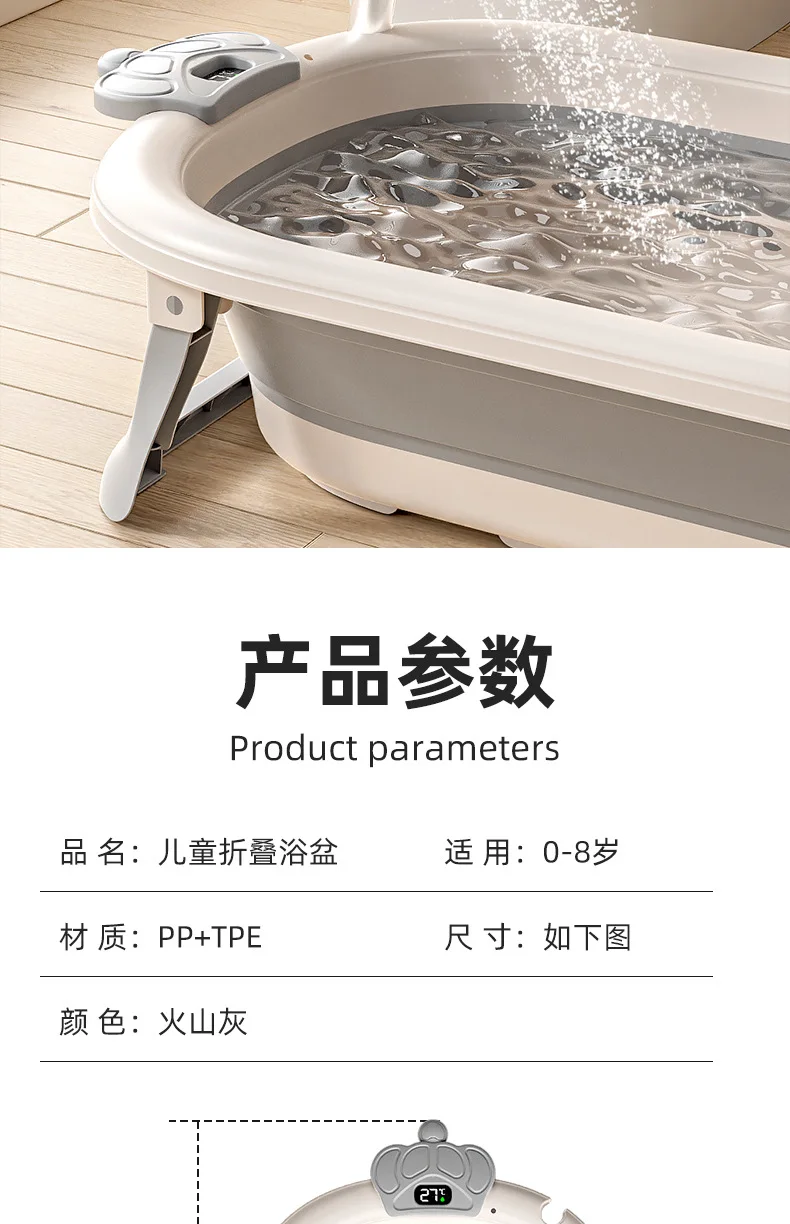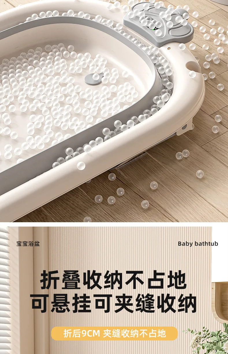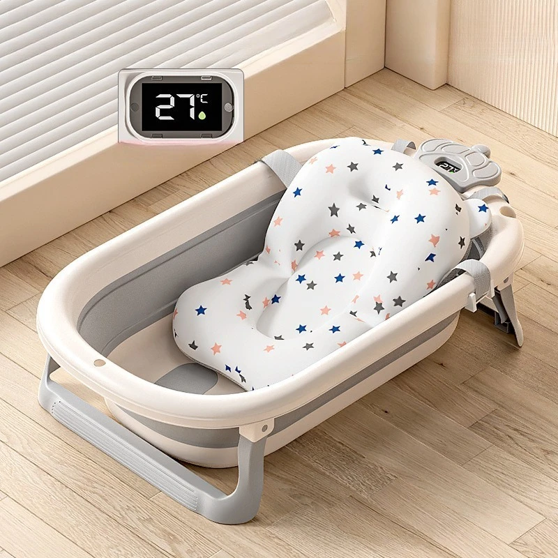 Comprar Bañera de bebé plegable de grado hospitalario, lavabo de baño para recién nacido de 3 etapas con tapón de drenaje con termómetro Digital, compatible con bebés de 0 a 24 meses