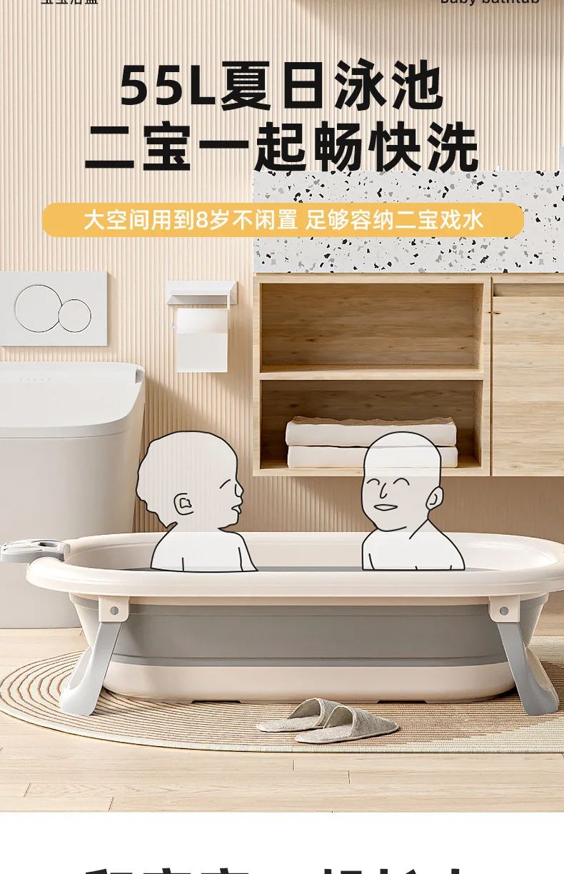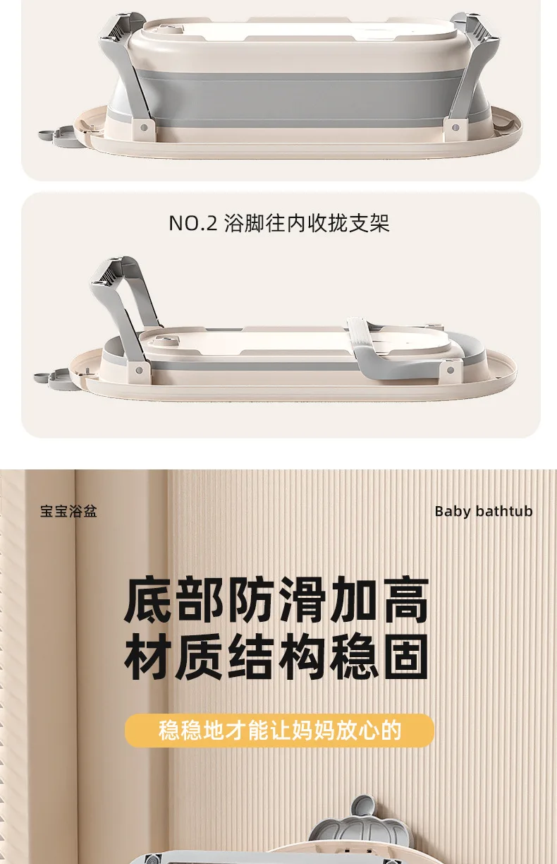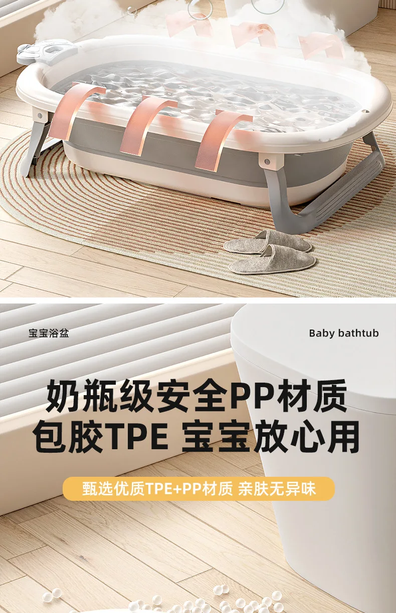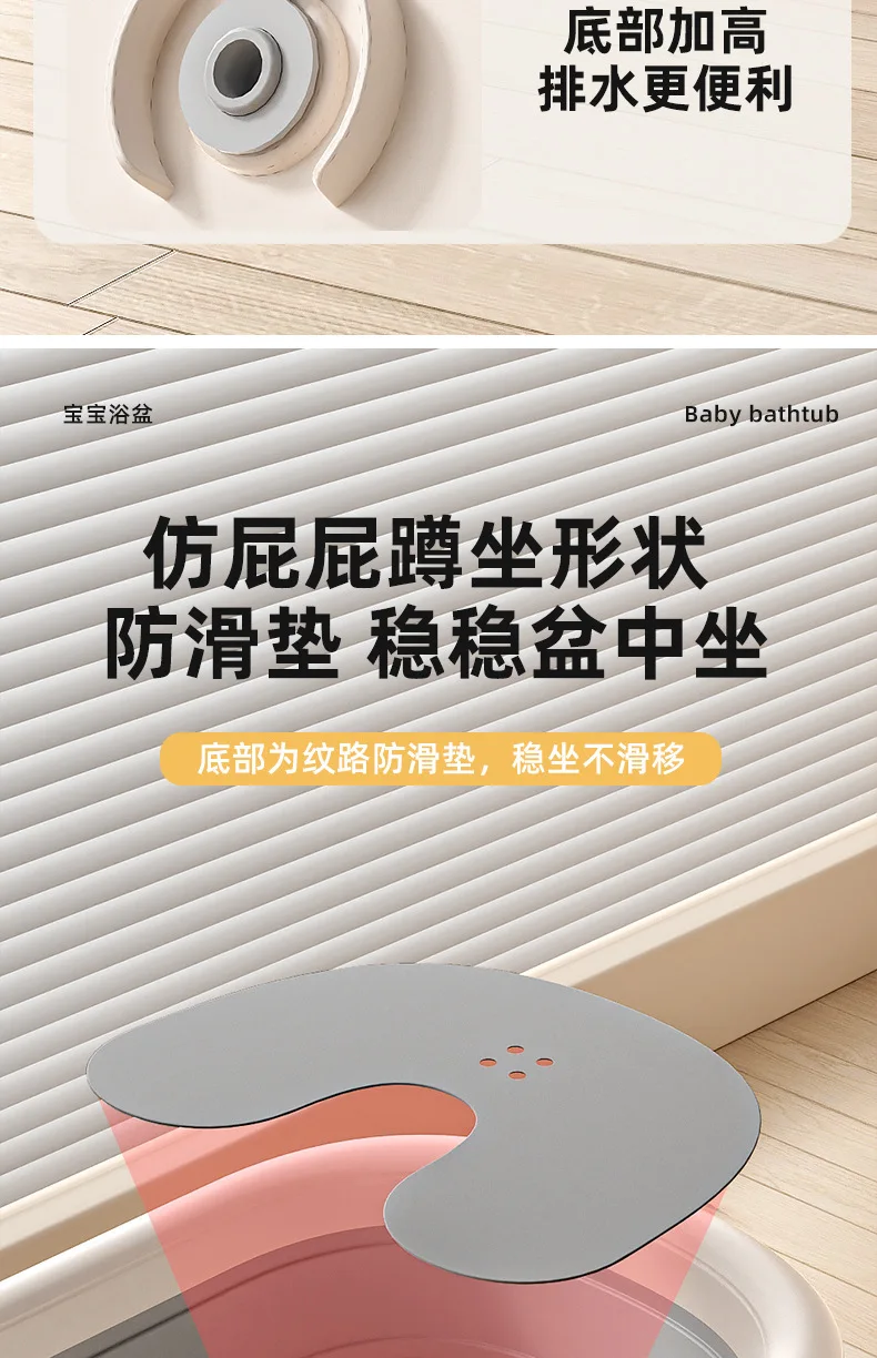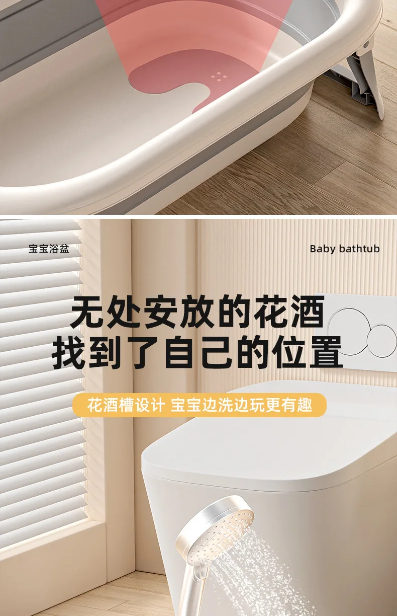 Comprar Bañera de bebé plegable de grado hospitalario, lavabo de baño para recién nacido de 3 etapas con tapón de drenaje con termómetro Digital, compatible con bebés de 0 a 24 meses