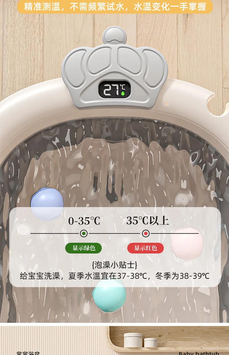 Bañera de bebé plegable de grado hospitalario, lavabo de baño para recién nacido de 3 etapas con tapón de drenaje con termómetro Digital, compatible con bebés de 0 a 24 meses