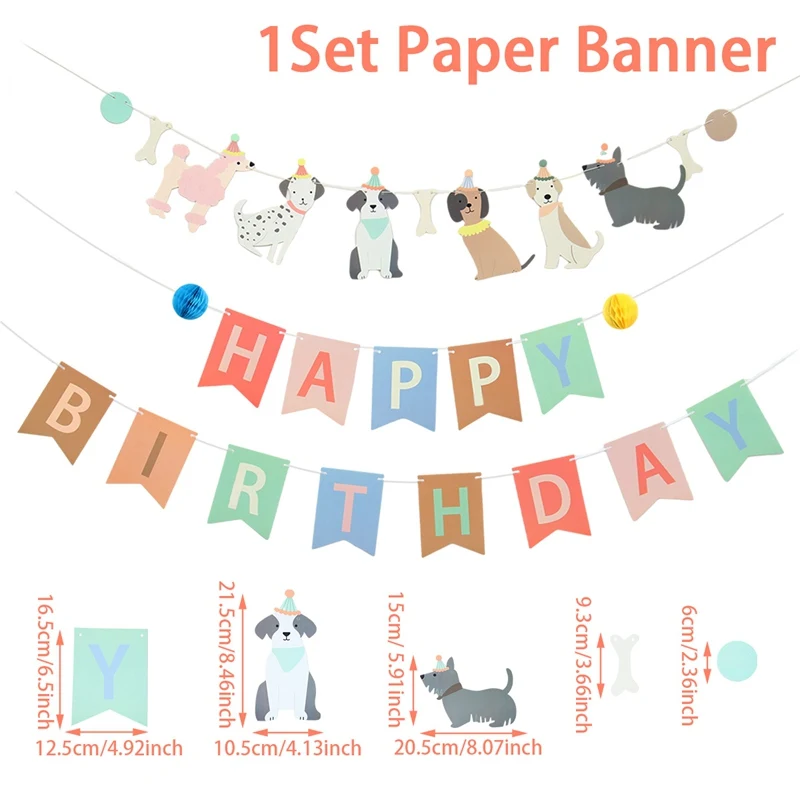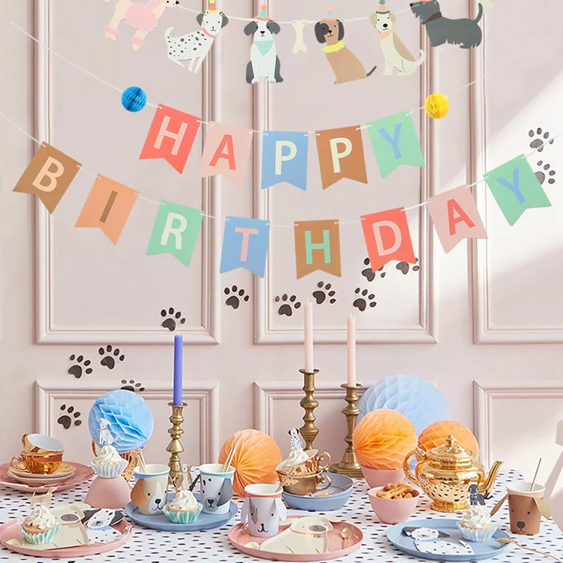 Comprar Banner de feliz cumpleaños con temática de perro cachorro, telón de fondo colorido para decoración navideña, suministros para fiesta de feliz cumpleaños, 1 ud.