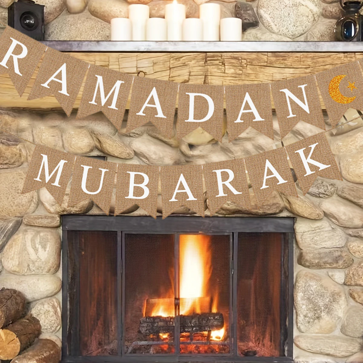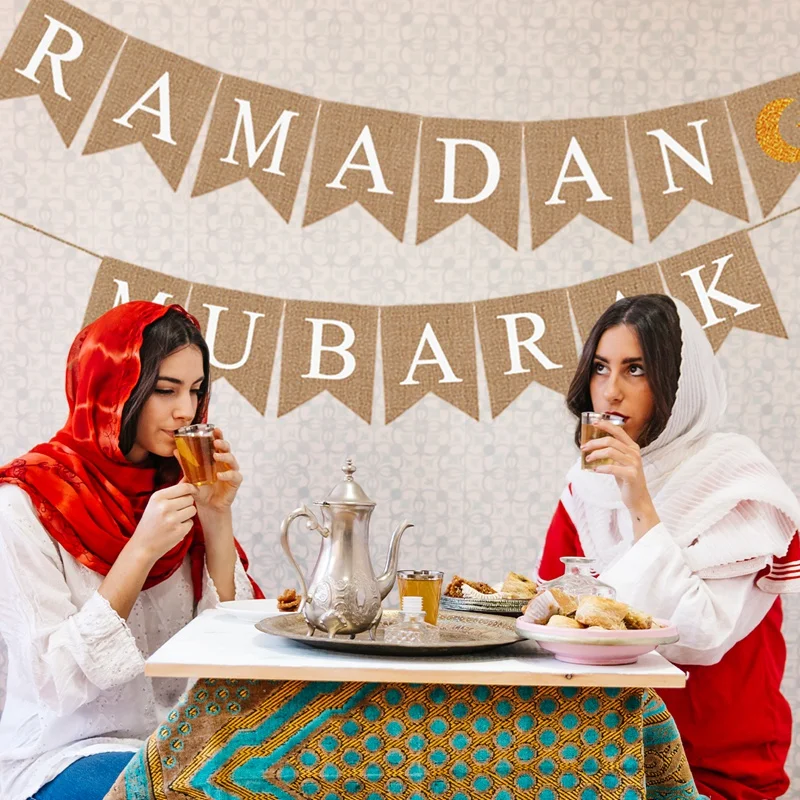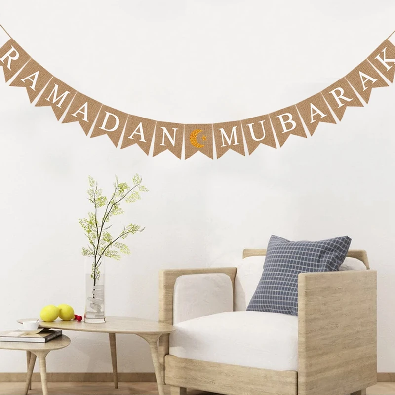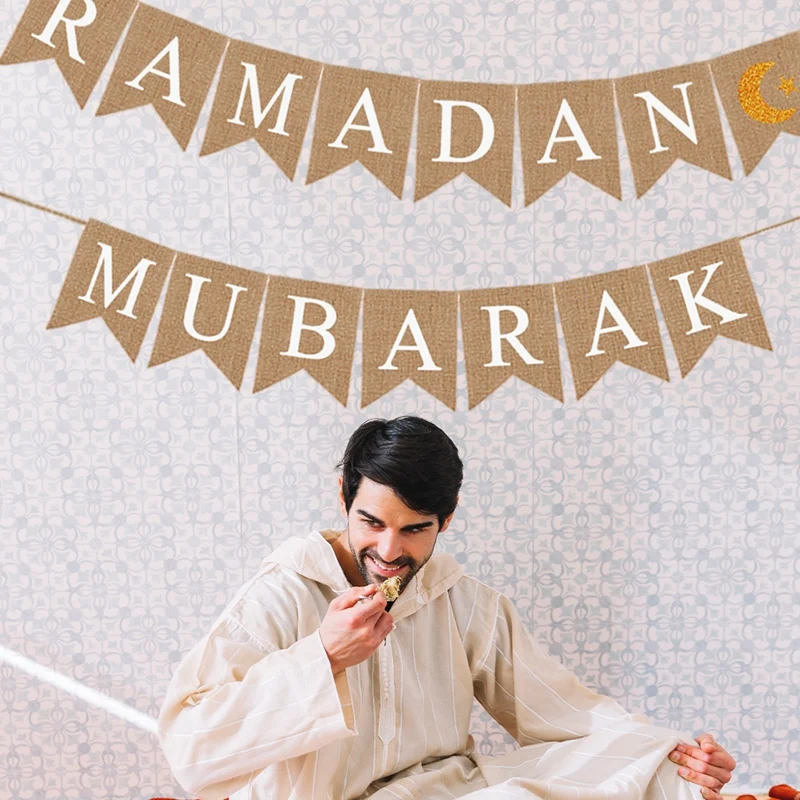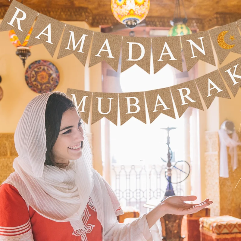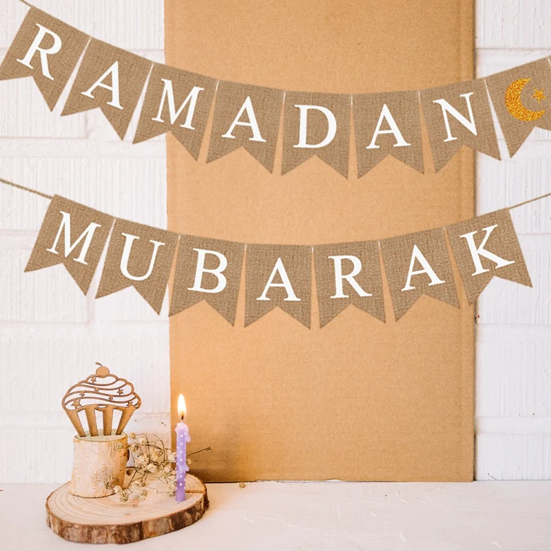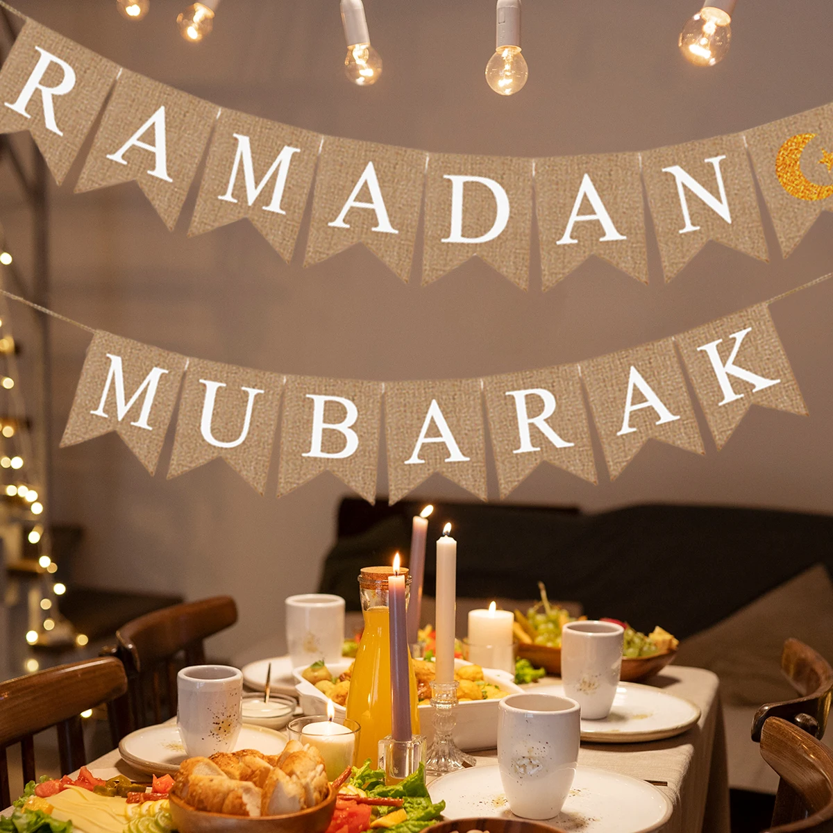 Banner de lino Eid Mubarak, guirnalda, Luna, estrella, adornos colgantes, musulmán islámico para el hogar, decoración de Ramadán, suministros para fiestas y festivales