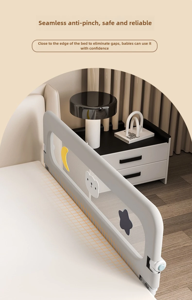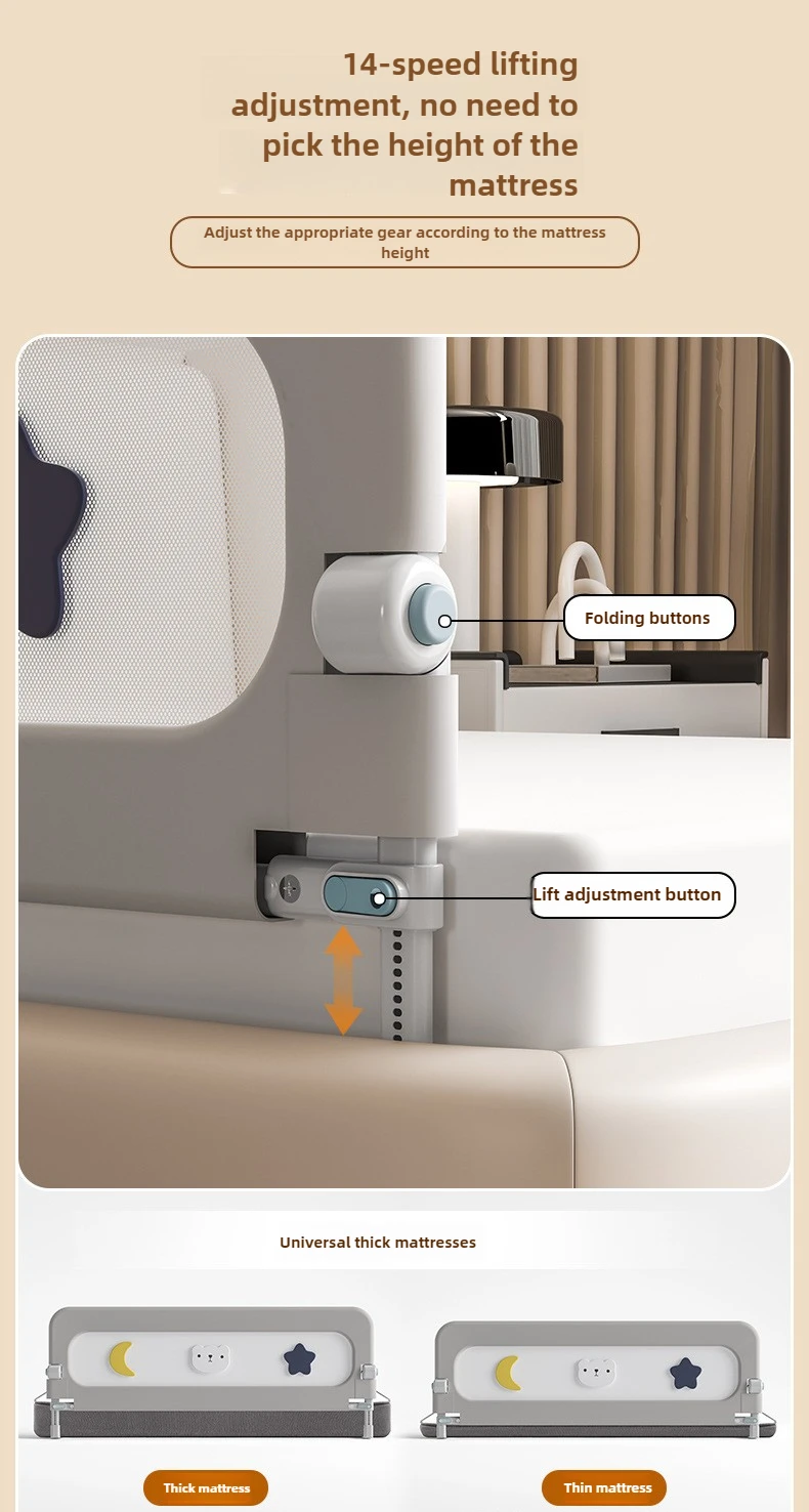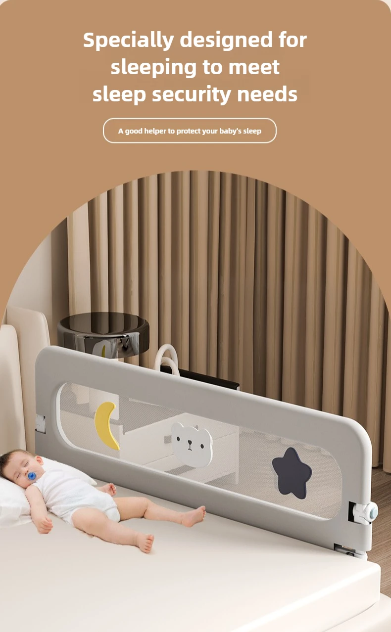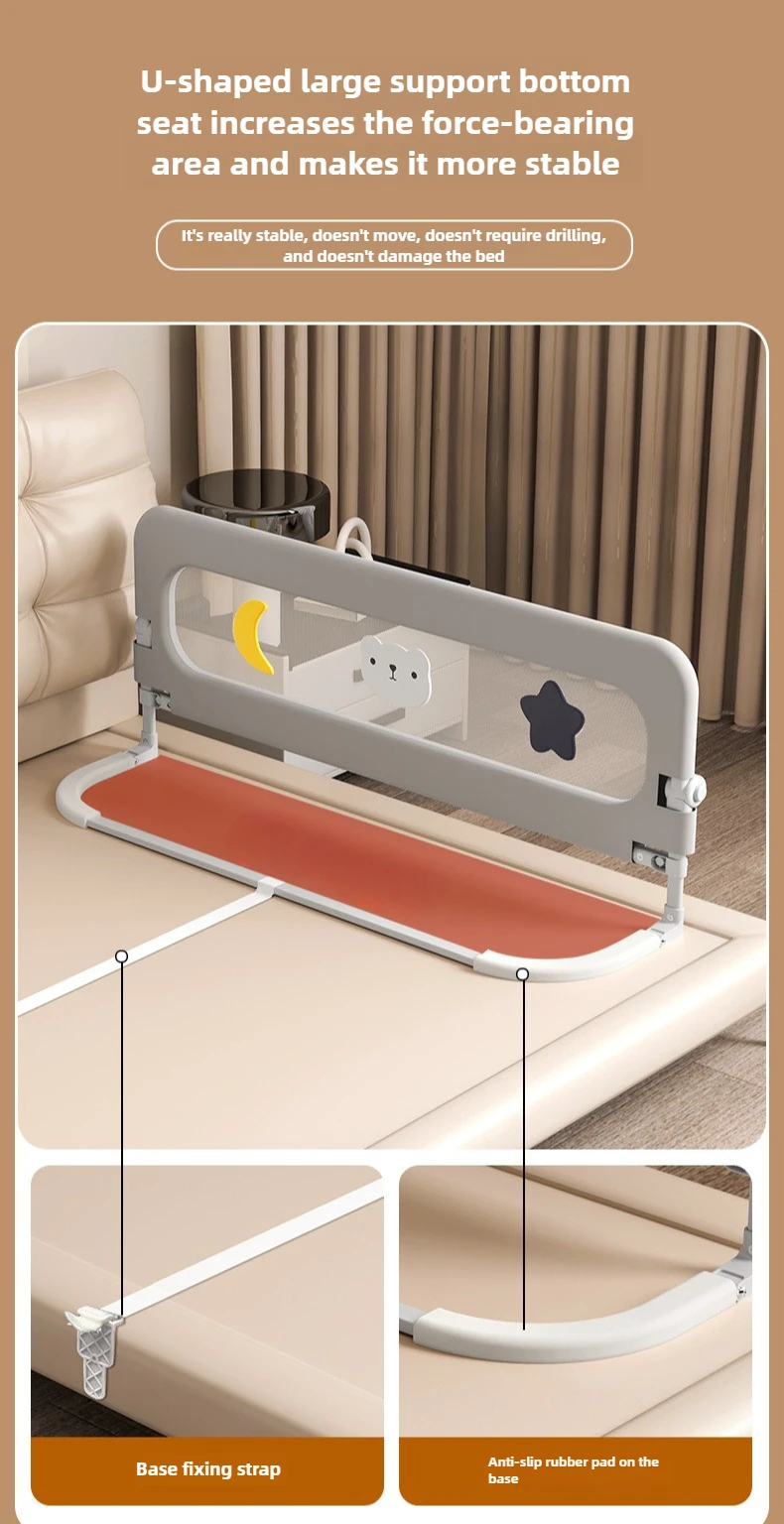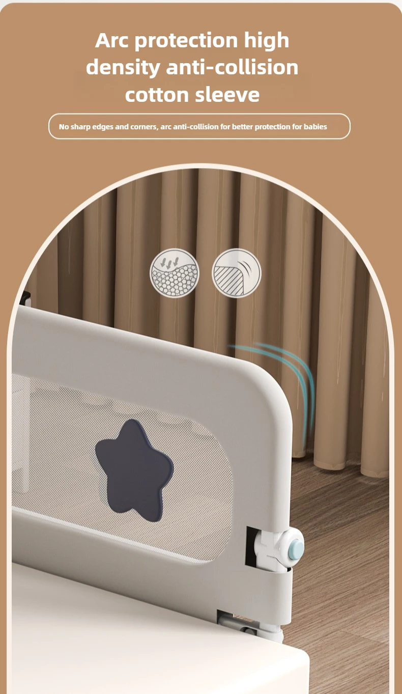 Adjustable Bed Guardrail Baby Safety Bed Barrier Anti-Fall Baby Crib Bumper Handrail Bed Safety Rails Kids Fall Out Protection DescriptionThe baby's safe bed circumference can effectively protect the baby from falling off the bed,allowing parents to sleep comfortably. At the same time, it can also be adjusted in height,can be raised and lowered, fixed with metal railings, and easy to operate.It is suitable for beds of 1.5M/1.8M/2.0M/ When choosing,please measure the width of the bed first. It is generally recommended to install three or four pieces,which will provide better fixation effect.