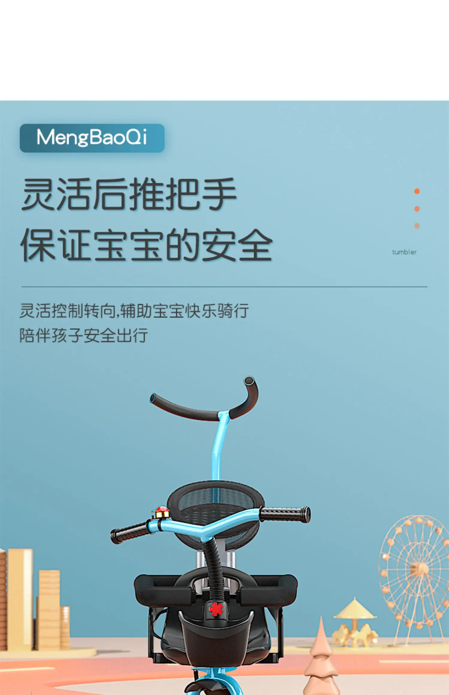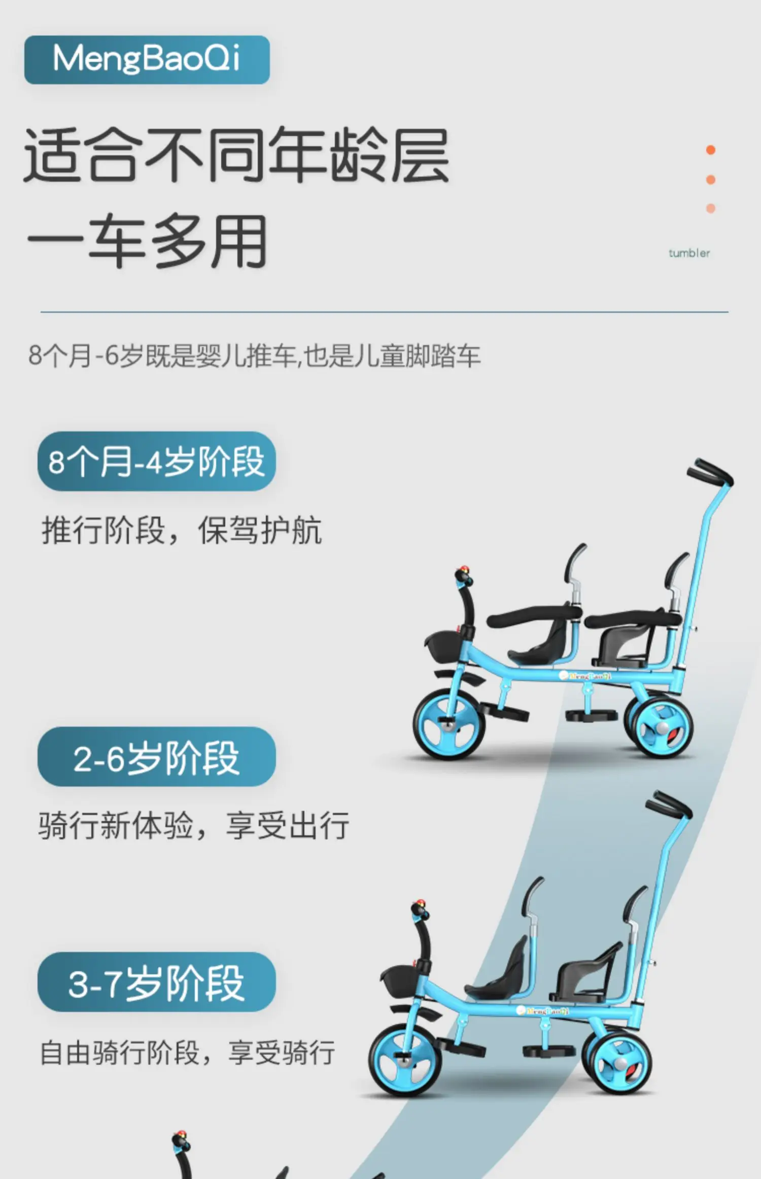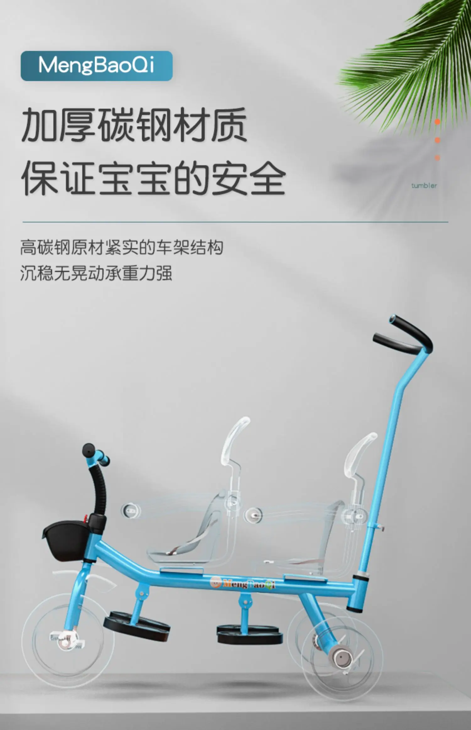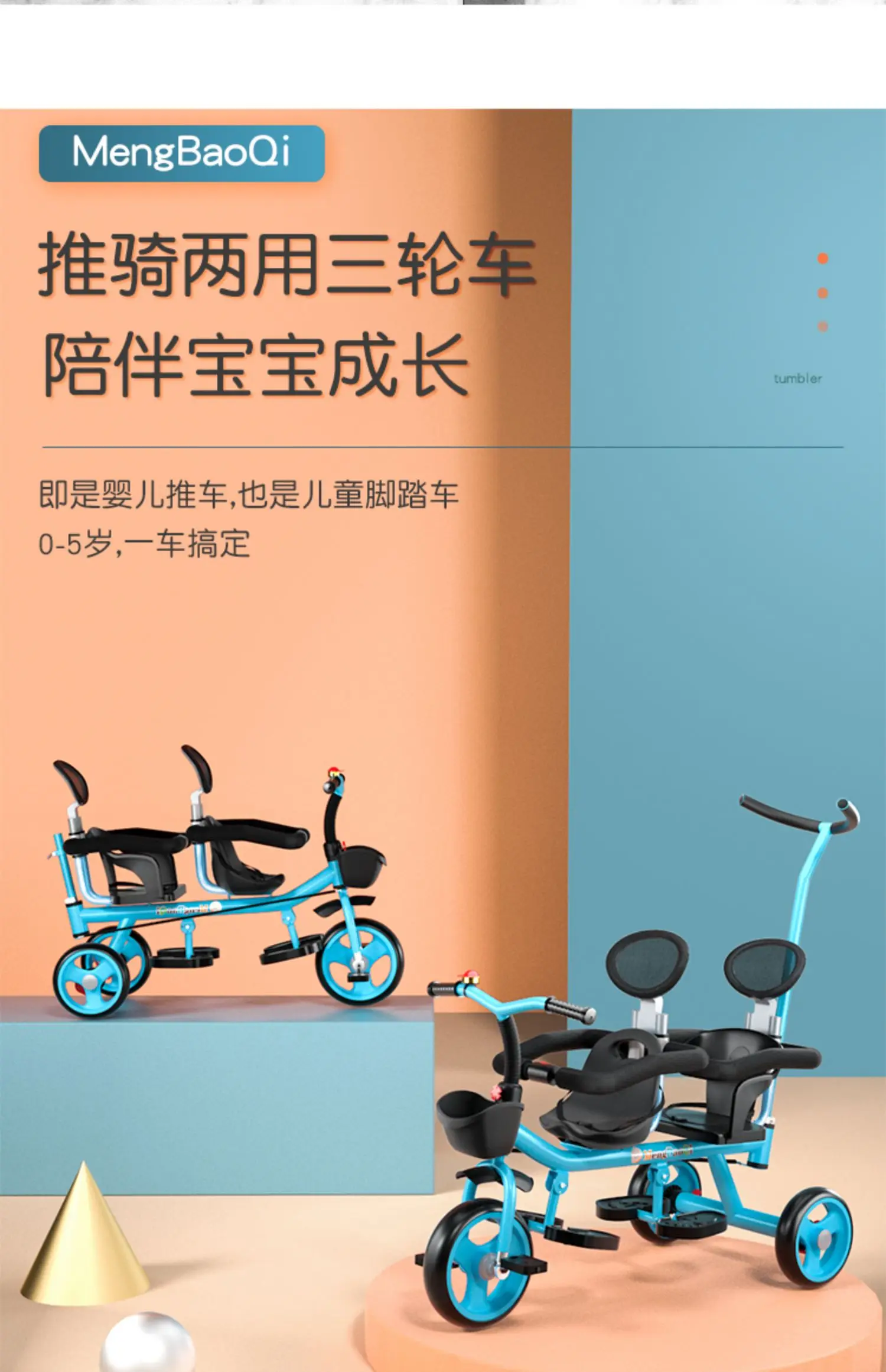 Barandilla de seguridad para triciclo para niños gemelos, freno trasero antideslizante, asiento desmontable, diseño plegable para viajes en centro comercial con portabebés doble