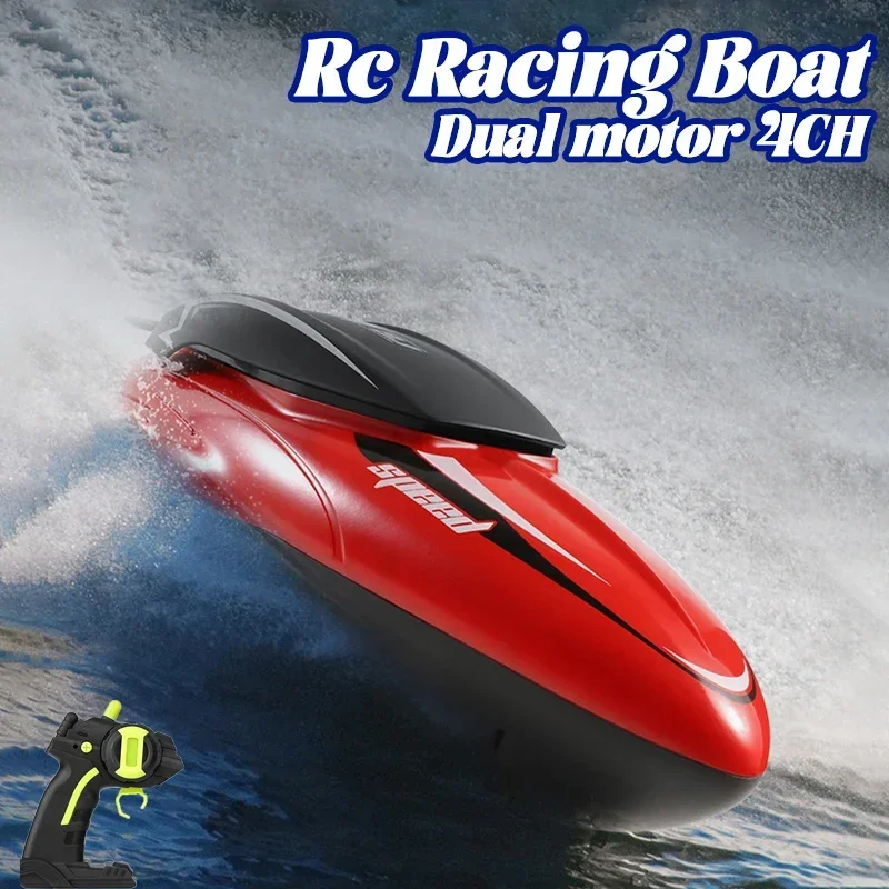 Comprar Barco de carreras a Control remoto para niños, lancha rápida de alta velocidad, batería de 20 minutos, Motor Dual, impermeable, recargable, juguete