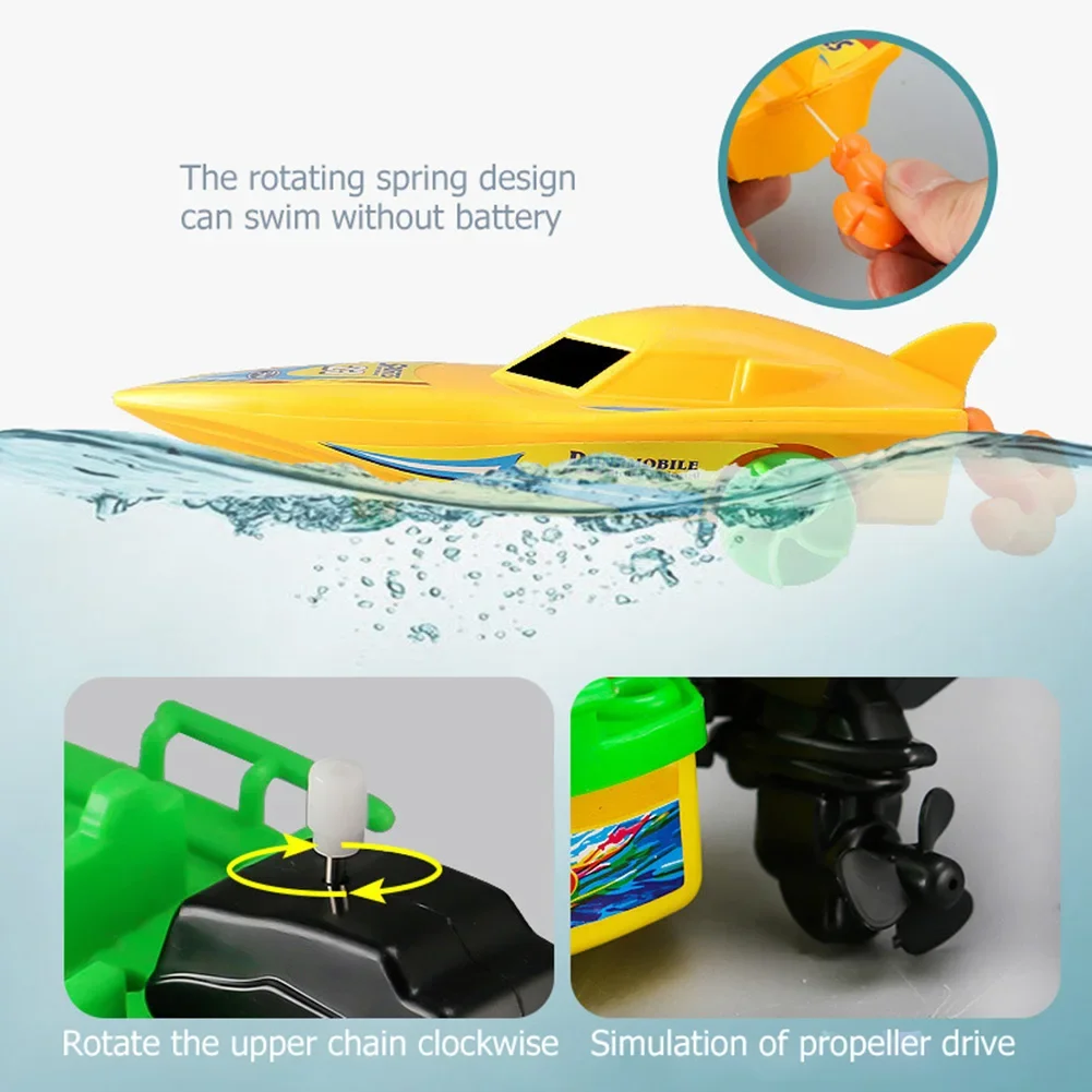 Barco de velocidad Barco Bobinado Clockwork Juguete Flotador Agua Clásico Wind up Barco de agua Niños Bañera Ducha Niños Juguete Regalos Color al azar