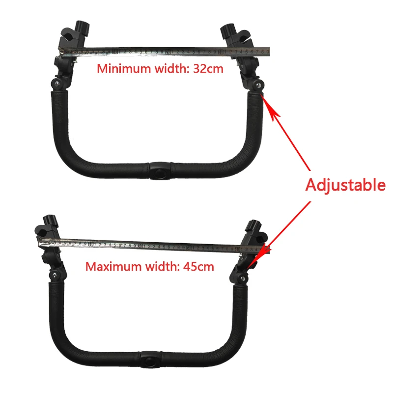 Atención: confirme si el ancho del marco de su cochecito está dentro del rango de ajuste del reposabrazos y si el grosor del marco de su cochecito está dentro del rango de ajuste del clip.