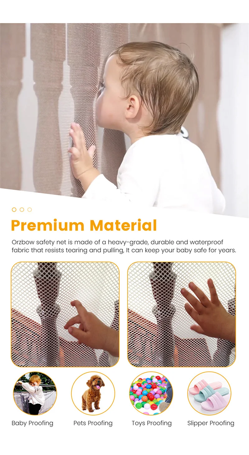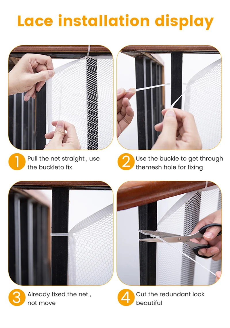 2.Red de seguridad para niños: esta red de seguridad para niños se puede instalar en el pasamanos para evitar que los niños sobresalgan la cabeza y el cuerpo de la barandilla, proporcionando una barrera de seguridad para sus hijos y mascotas, evitando accidentes y una valla de juego muy práctica.