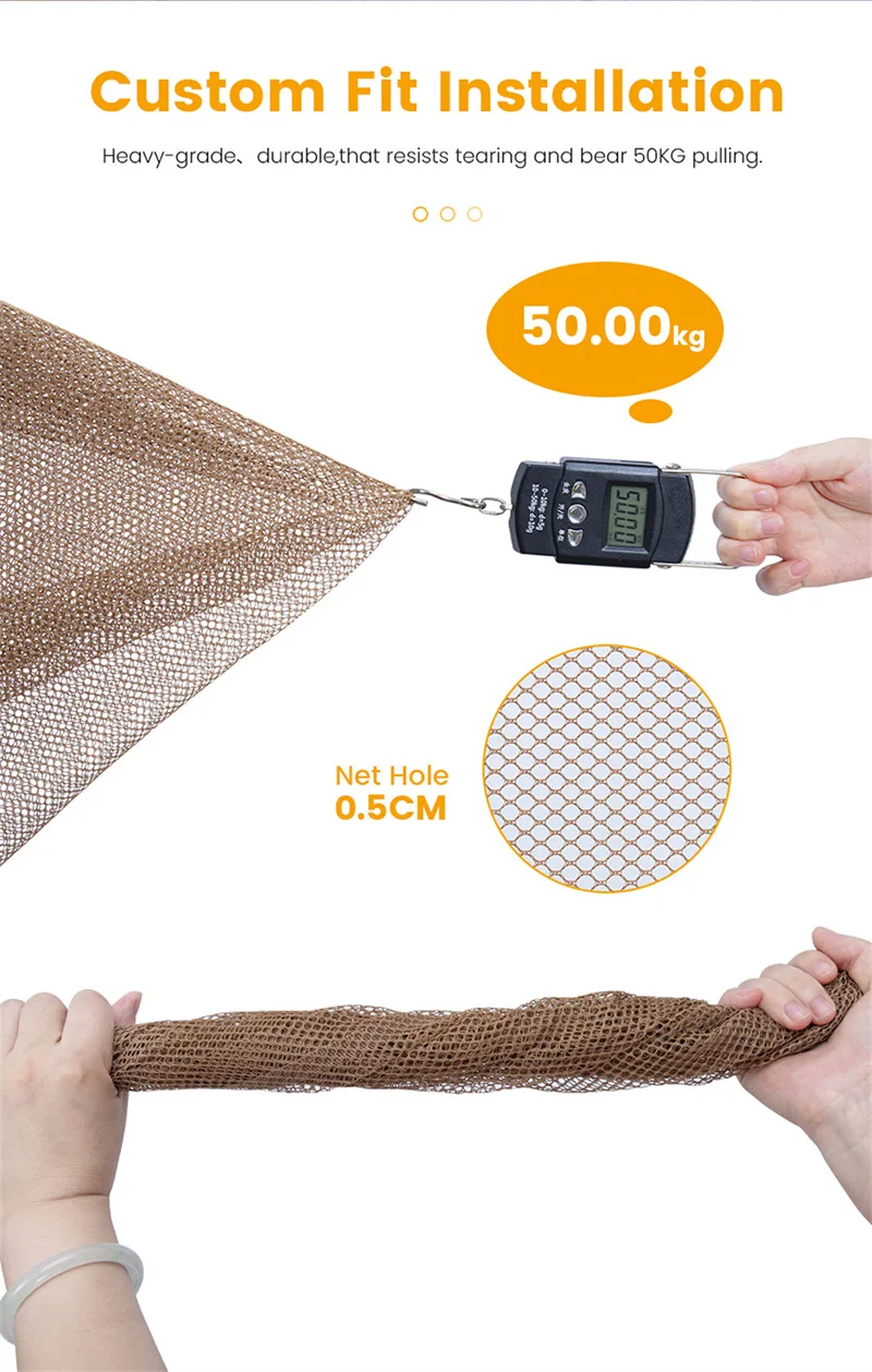 1.Materiales de alta calidad: la funda de malla está hecha de tela más pesada, que es resistente a tirones, lavados y resistente a la intemperie, y puede usarse durante mucho tiempo.Muy adecuado para uso interior y exterior.
