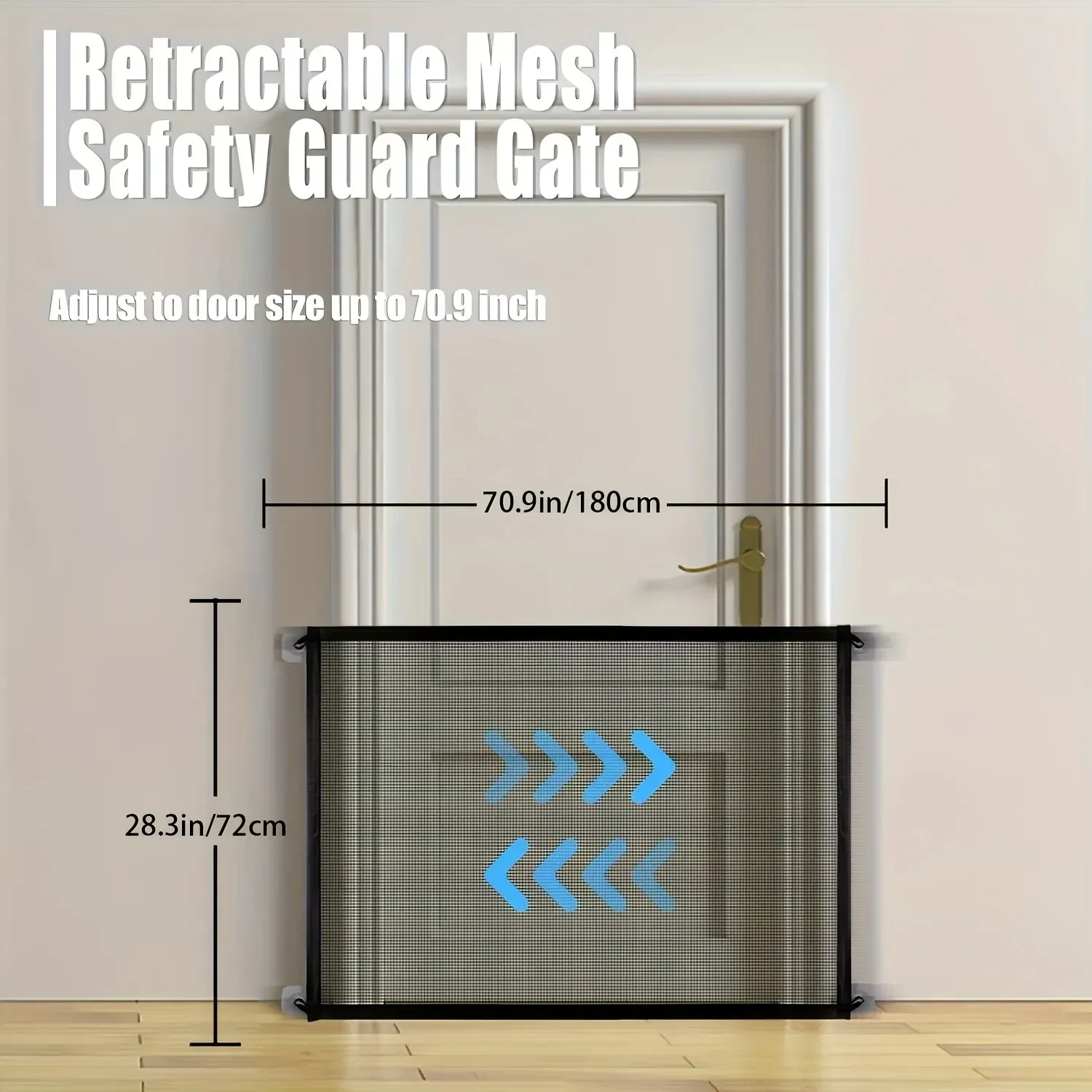 Barrera retráctil para valla de bebé, puerta de seguridad plegable para bebé con 4 ganchos, malla de nailon, puerta de protección portátil, red de aislamiento para mascotas