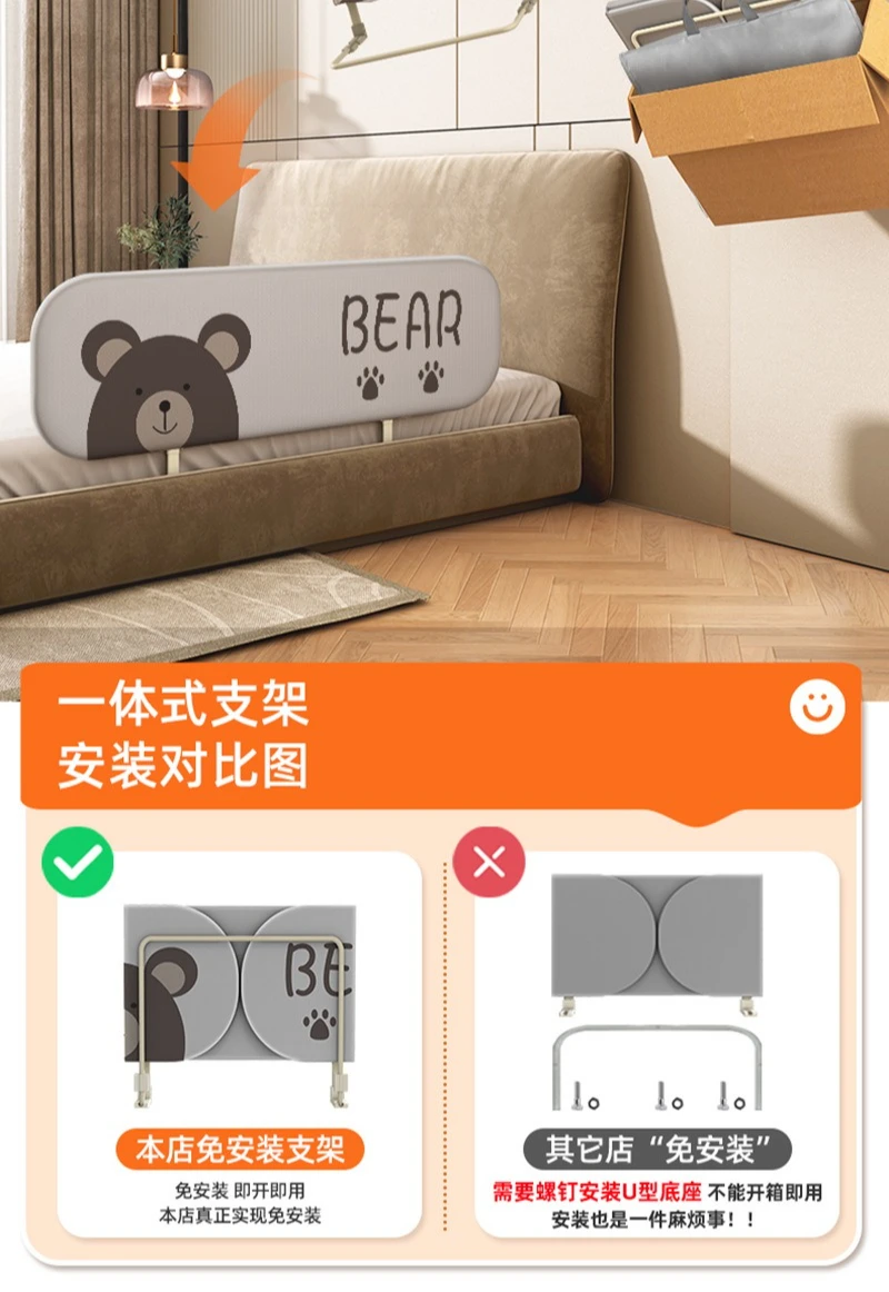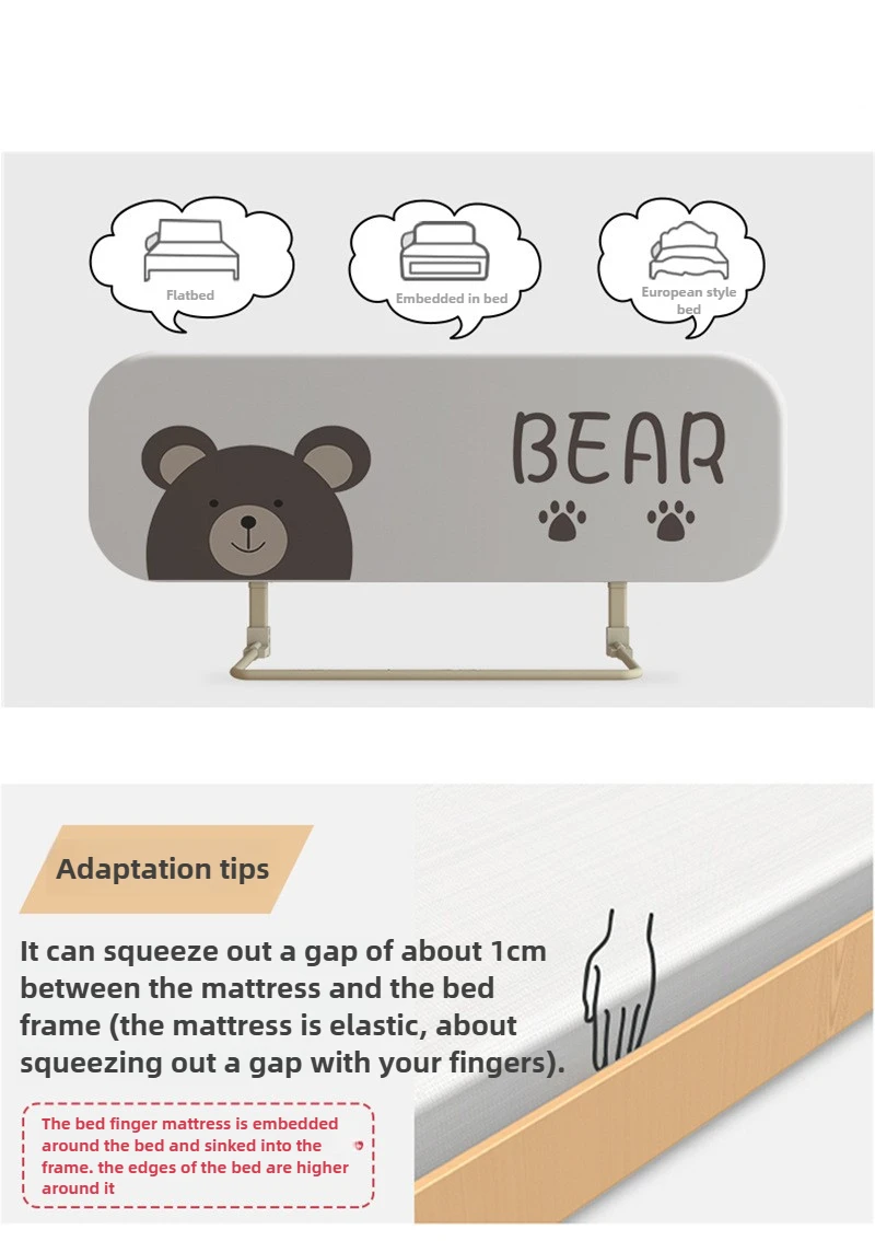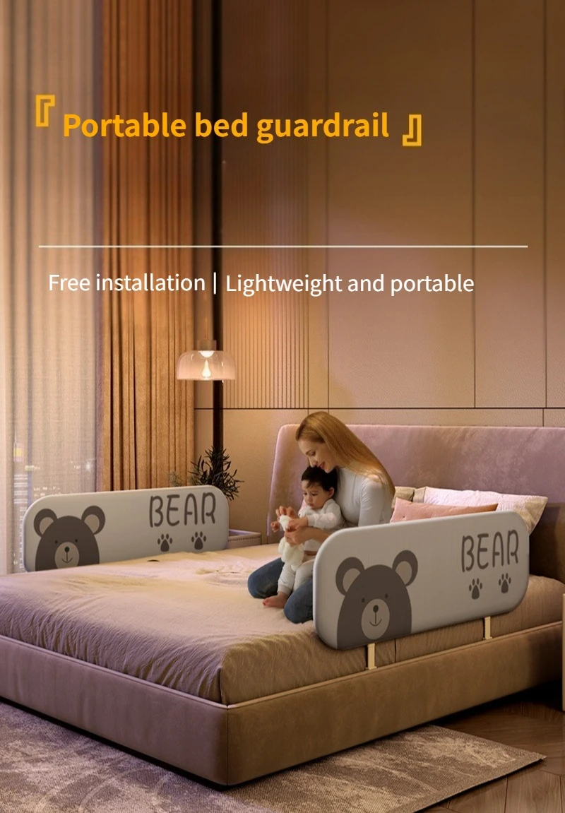 Barrera de seguridad para cama de bebé de 150CM, barandilla para cama de bebé sin instalación, valla de cama anticaída, camas de viaje plegables portátiles, protección de riel