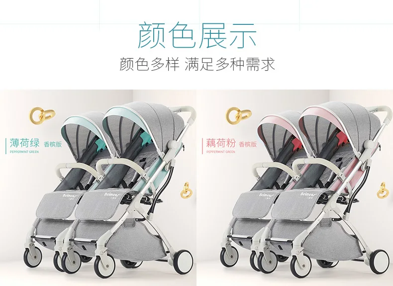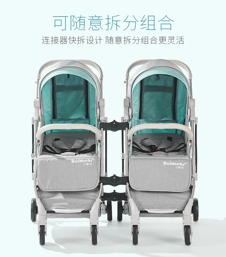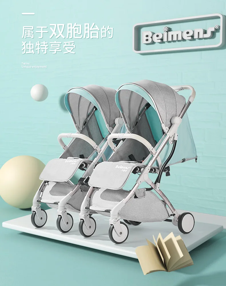 Beimengshi-cochecito de bebé gemelo, se puede dividir en sentado y tumbado, súper portátil y plegable