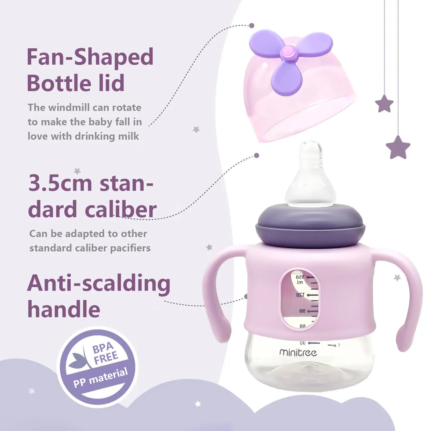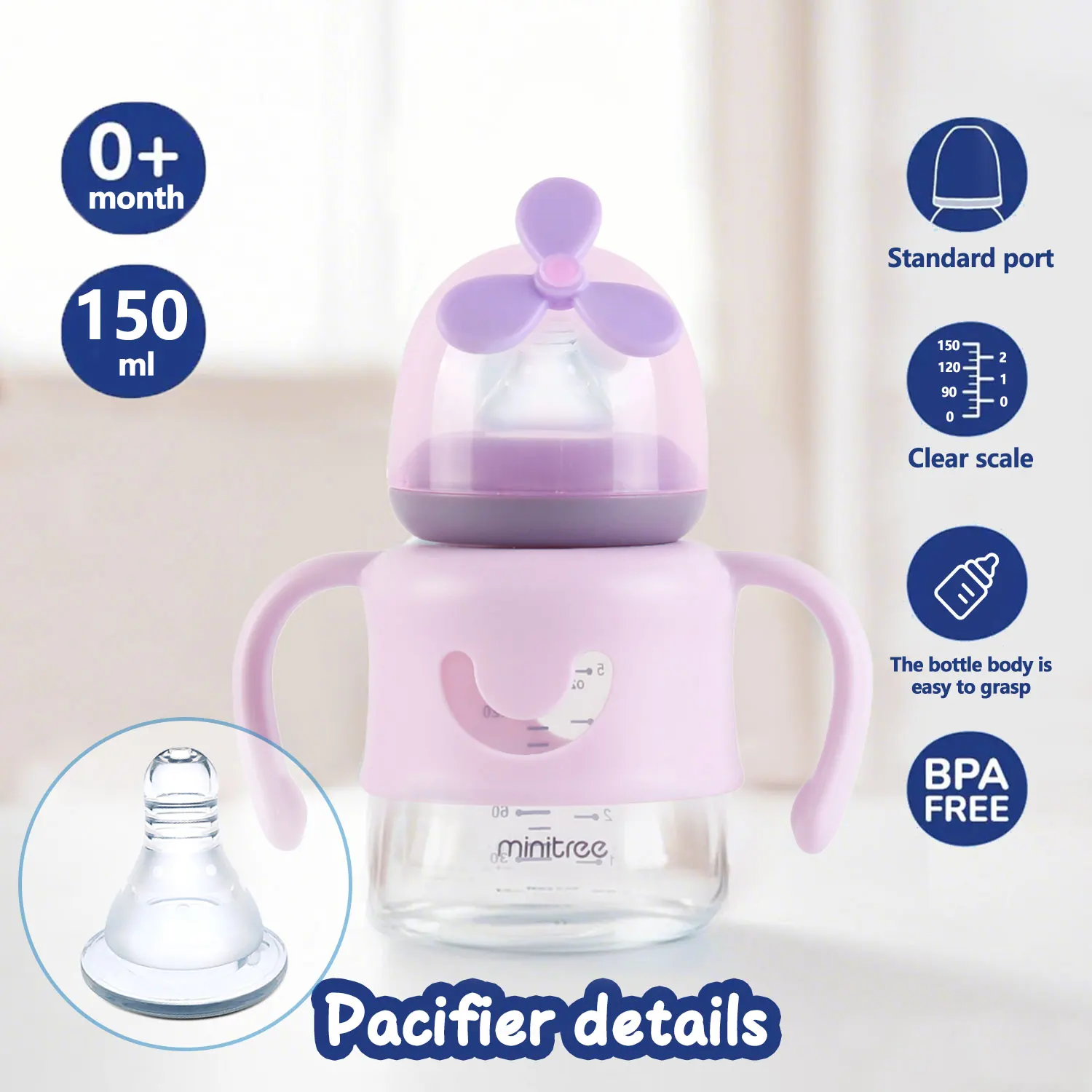 Disponible en tres atractivos colores: azul, morado y verde, cada uno con un colorido molino de viento a juego.¡Dale a tu bebé una experiencia de bebida divertida y saludable hoy!