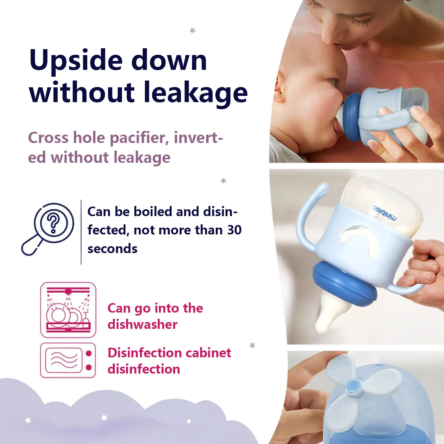 Disponible en tres atractivos colores: azul, morado y verde, cada uno con un colorido molino de viento a juego.¡Dale a tu bebé una experiencia de bebida divertida y saludable hoy!