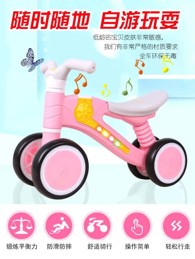 Bicicleta de equilibrio para niños, Scooter Reversible de 1 a 3 años, cuatro ruedas para montaña rusa de jardín de infantes, andador para bebé, bicicleta paralela