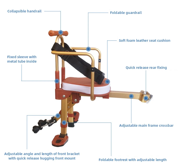 Asiento delantero plegable para niños, accesorios para bicicleta, sillín de seguridad para niños con Pedal y pasamanos, cojín infantil para bicicleta de carretera