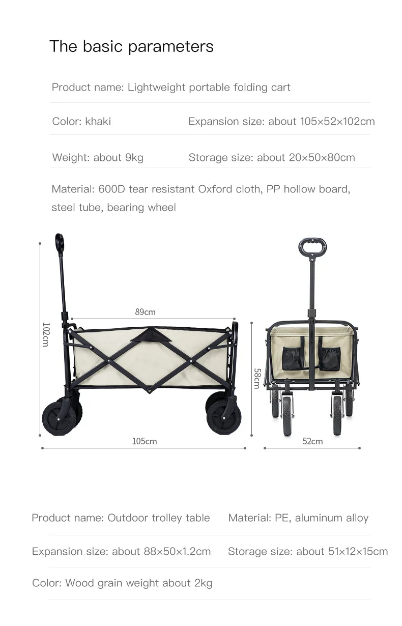 Comprar Bicicleta plegable portátil para acampar al aire libre, carrito de picnic, vagón de camping
