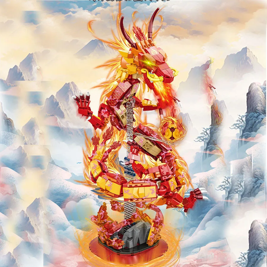 Comprar Bloque de dragón en espiral de Año Nuevo Chino Con Base, juguete de Ladrillo de construcción DIY, decoración del hogar 2024