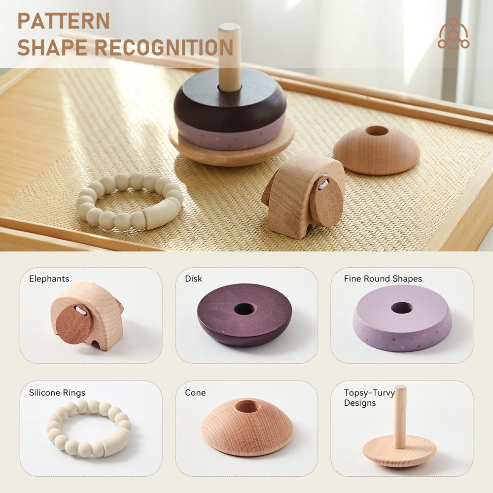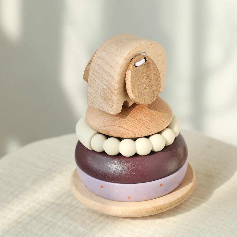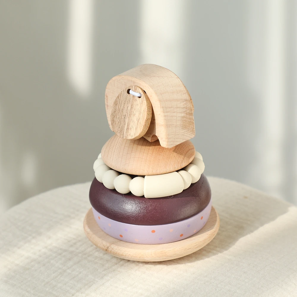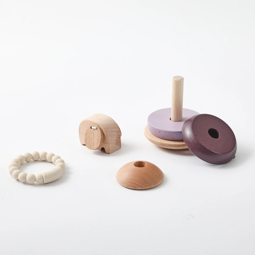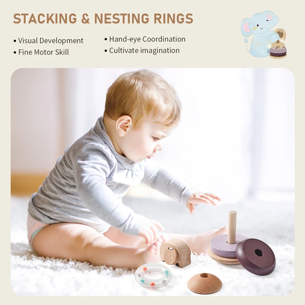Bloques de animales de madera Montessori para bebé, juguetes educativos, campana de elefante, juguete para la dentición, detecta agarre, equilibrio, juego cerebral, regalos para recién nacidos