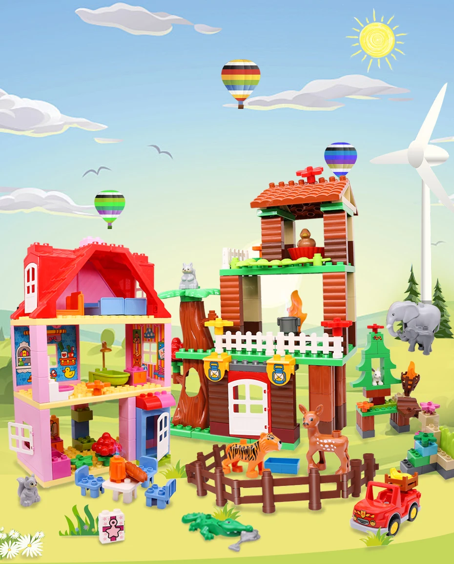Comprar Bloques de construcción de animales de la selva de gran tamaño para niños, bloques de construcción DIY, juguetes de construcción para niños, regalo para niños