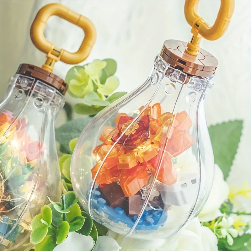 1. Bloques de construcción de bombillas de plantas suculentas: Este juego incluye 115 bloques de construcción que se pueden ensamblar para crear un modelo único y encantador en forma de bombilla con una planta suculenta en el interior. Ofrece una experiencia de construcción divertida y creativa para los niños.