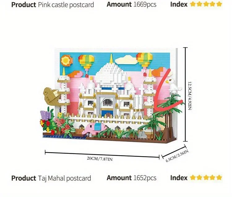 Abraza el mundo de las maravillas arquitectónicas con los bloques de construcción del castillo Rosa postal 3D construcción ensamblar ladrillos modelo. Este versátil juguete ofrece infinitas posibilidades para el juego y la creatividad. Construye, reconstruye y explora monumentos famosos o crea tus propias obras maestras arquitectónicas. Con su construcción duradera y su intrincado diseño, este juguete no solo es una fuente temporal de entretenimiento, sino un recuerdo que se puede apreciar durante años.