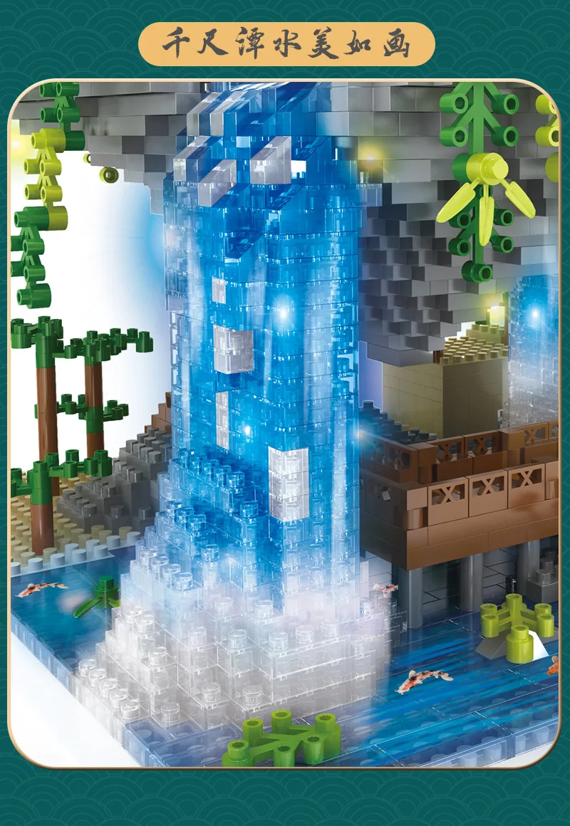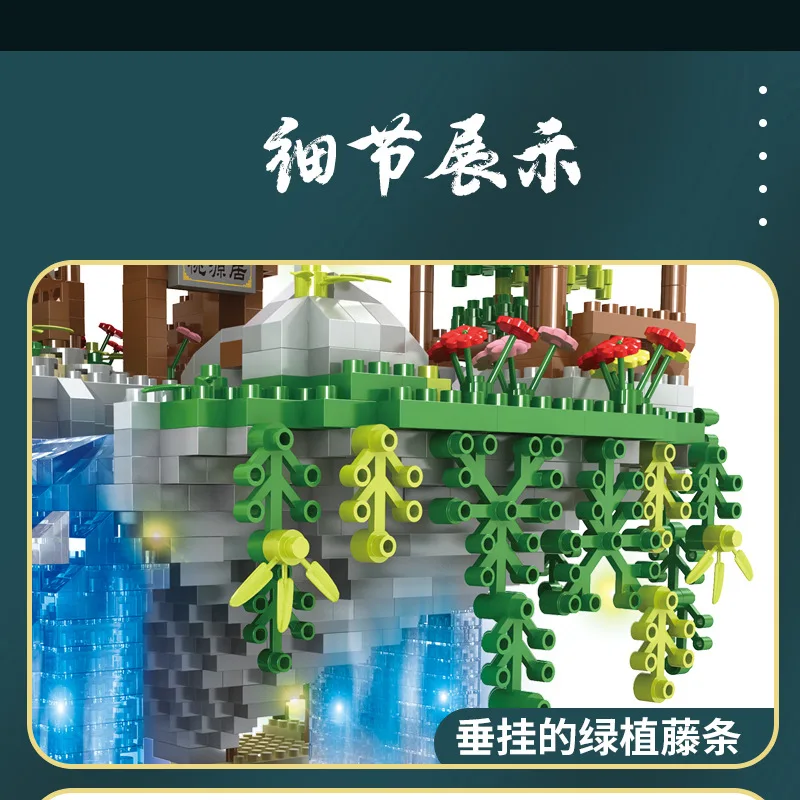 Son micro LEGO. Hasta ahora ha sido divertido de construir, pero las cascadas son muy frustrantes porque siguen desmoronándose. Normalmente uso pegamento, pero como son transparentes, no quiero que el pegamento se vea, así que estoy dejando ese paso para el final. También es como mil piezas (no se muestra en ningún lugar del libro o del paquete cuántas piezas hay).